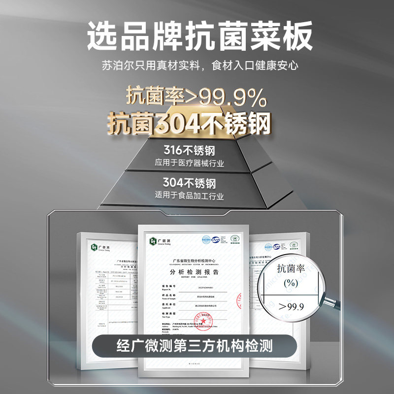 苏泊尔菜板防霉抗菌家用食品级水果砧板不锈钢切菜板双面案板粘板