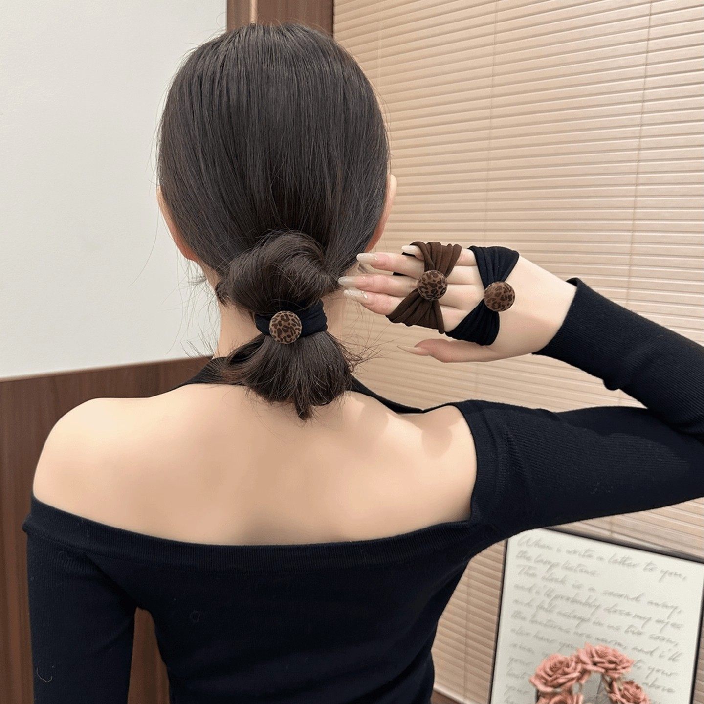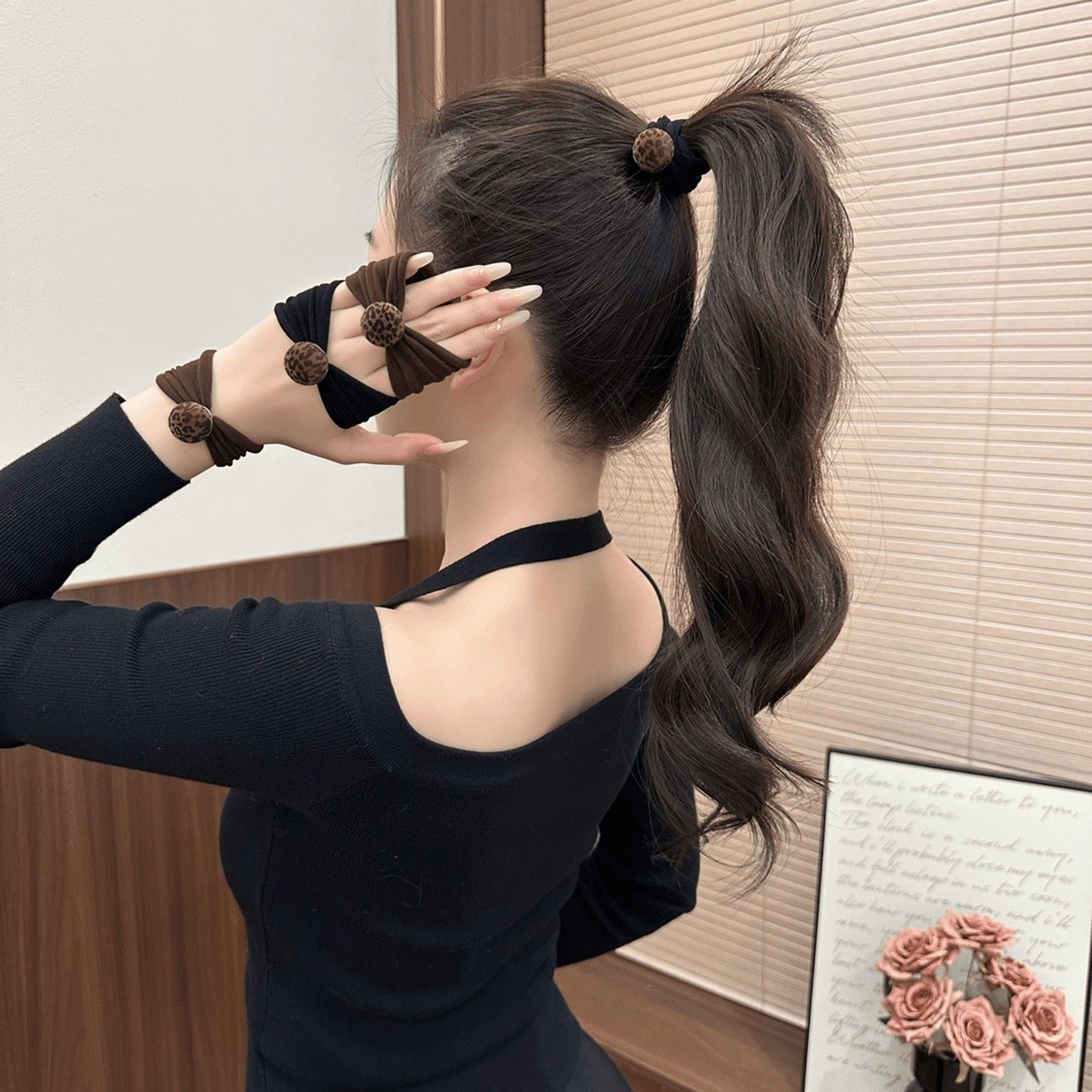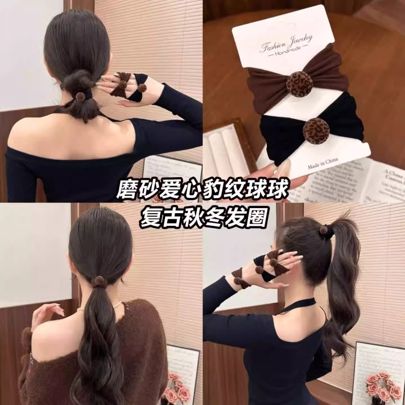 复古豹纹球球发圈女2025新款高弹力耐用头绳扎头发皮筋高级感发圈