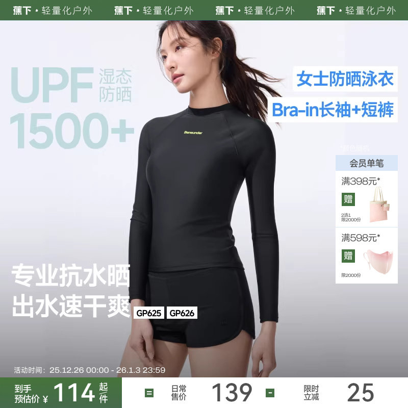 蕉下泳衣女分体泳衣速干长袖温泉泳衣漂流海边游泳衣泳裤泳衣套装