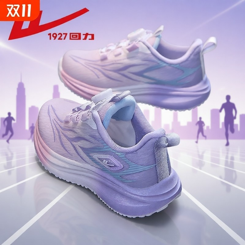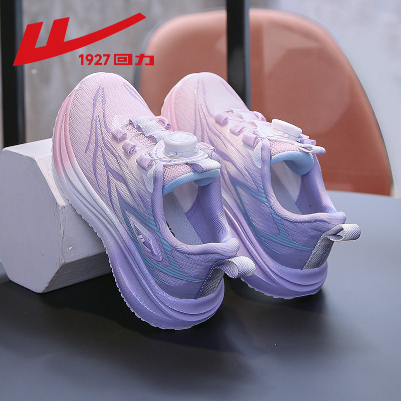 回力童鞋女童运动鞋2025年秋季新款旋钮扣大童跑步鞋透气儿童网鞋