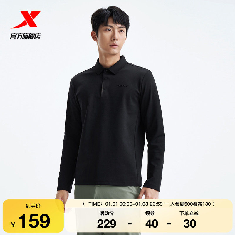 特步长袖POLO衫男款2025秋季新款内搭健身跑步运动服975329040360