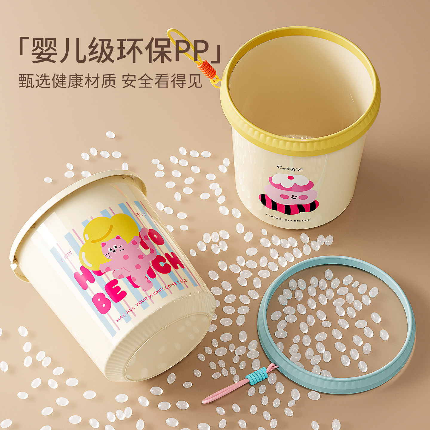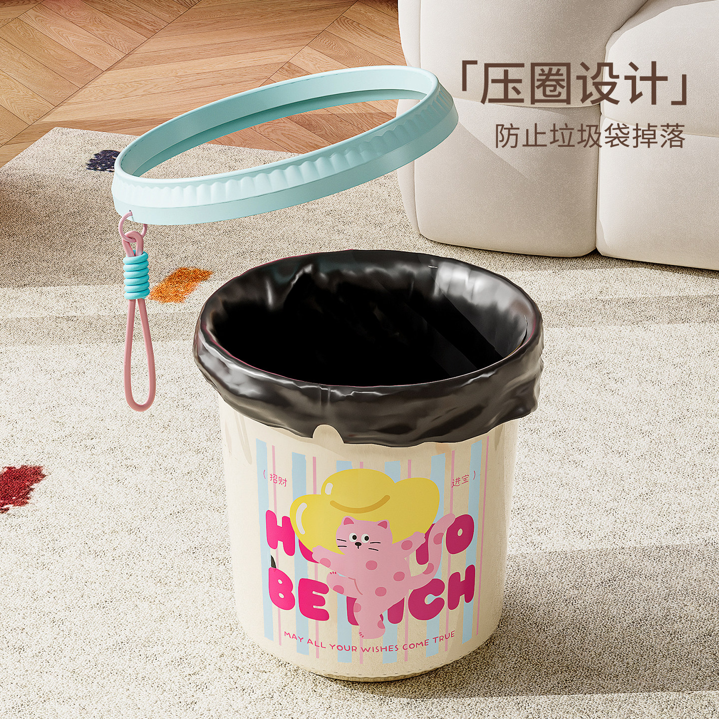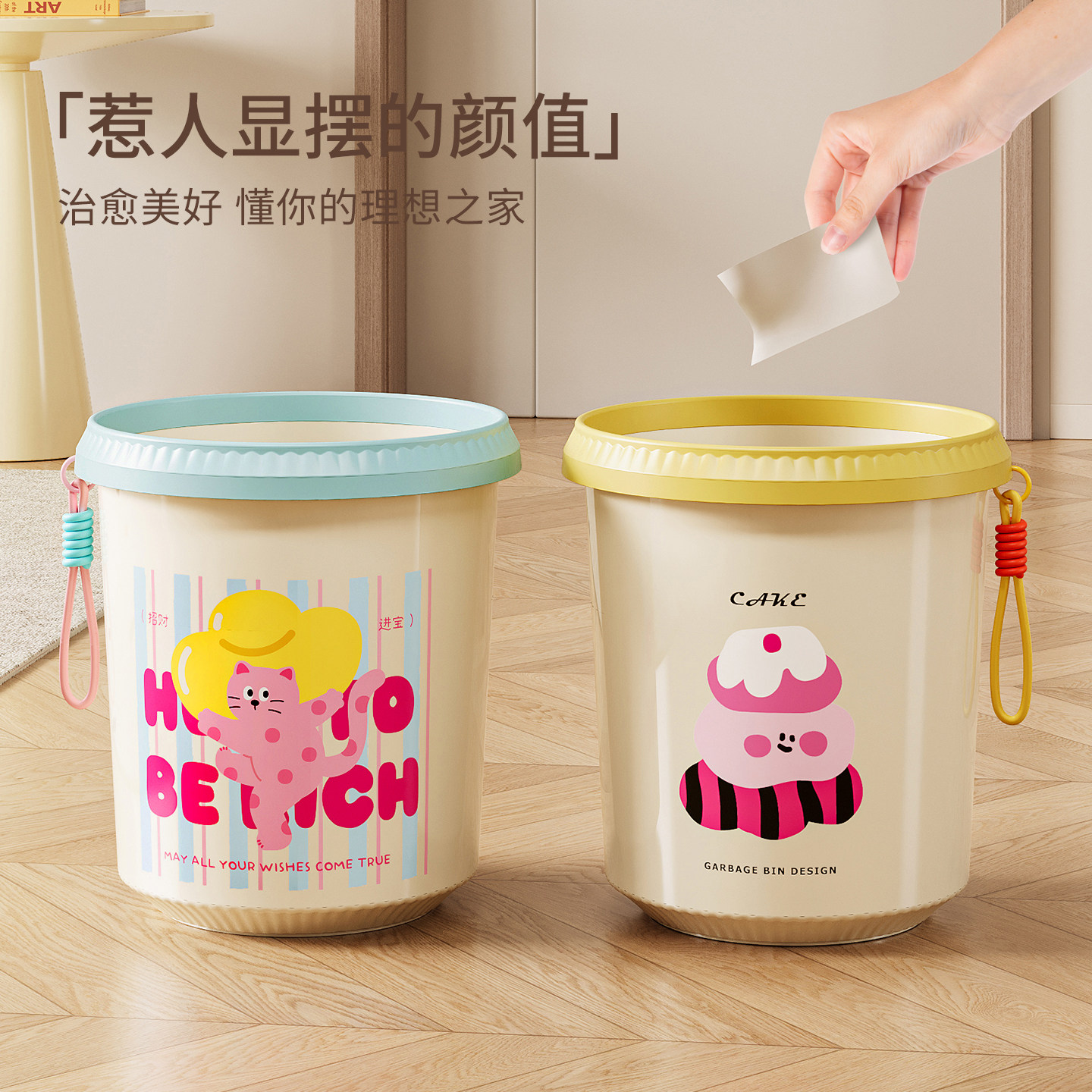 垃圾桶家用2025新款客厅卧室宿舍卡通可爱高颜值卫生间纸篓多巴胺