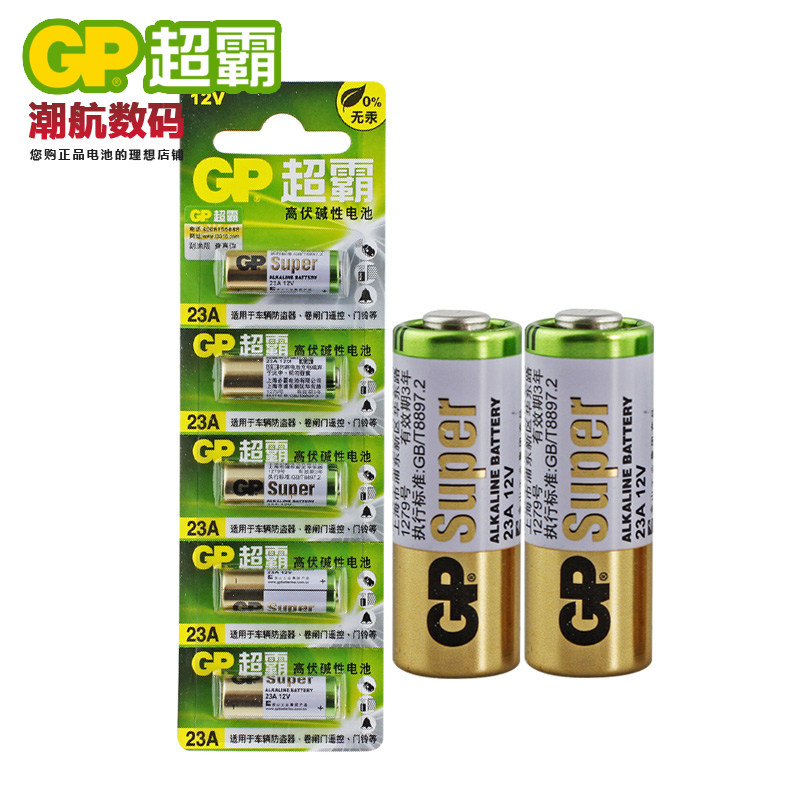 GP超霸23A12V卷帘门吊灯23A防盗车库遥控器433卷闸门12v23a引闪器L1028风扇门铃电池a23s原装小号23安12伏5粒