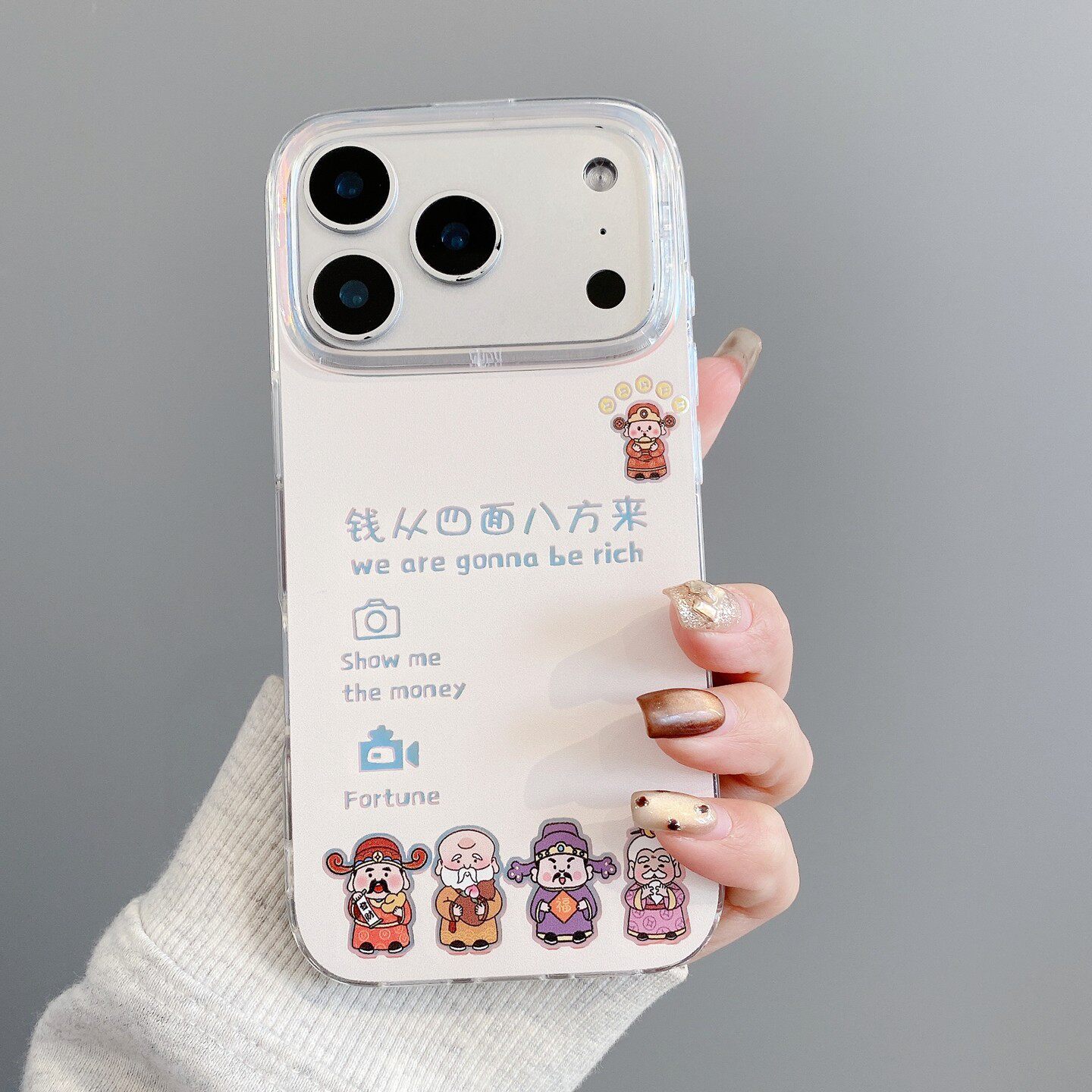 钱来财神适用iphone17promax手机壳新年款彩绘苹果16pro极光镭射15国潮简约男女14个性创意13全包防摔保护套
