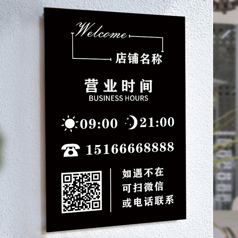 营业时间告示牌营业时间牌店铺门口挂牌工作室门牌广告牌服装店理发店可修改展示牌上下班作息时间玻璃贴定制
