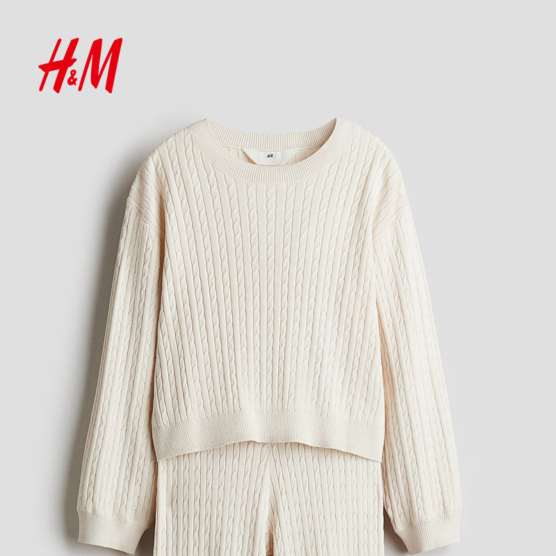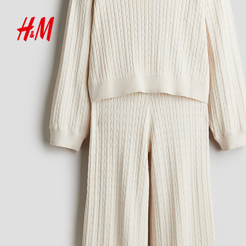 HM童装儿童女童套装2件式冬季休闲针织套衫阔腿裤1260508