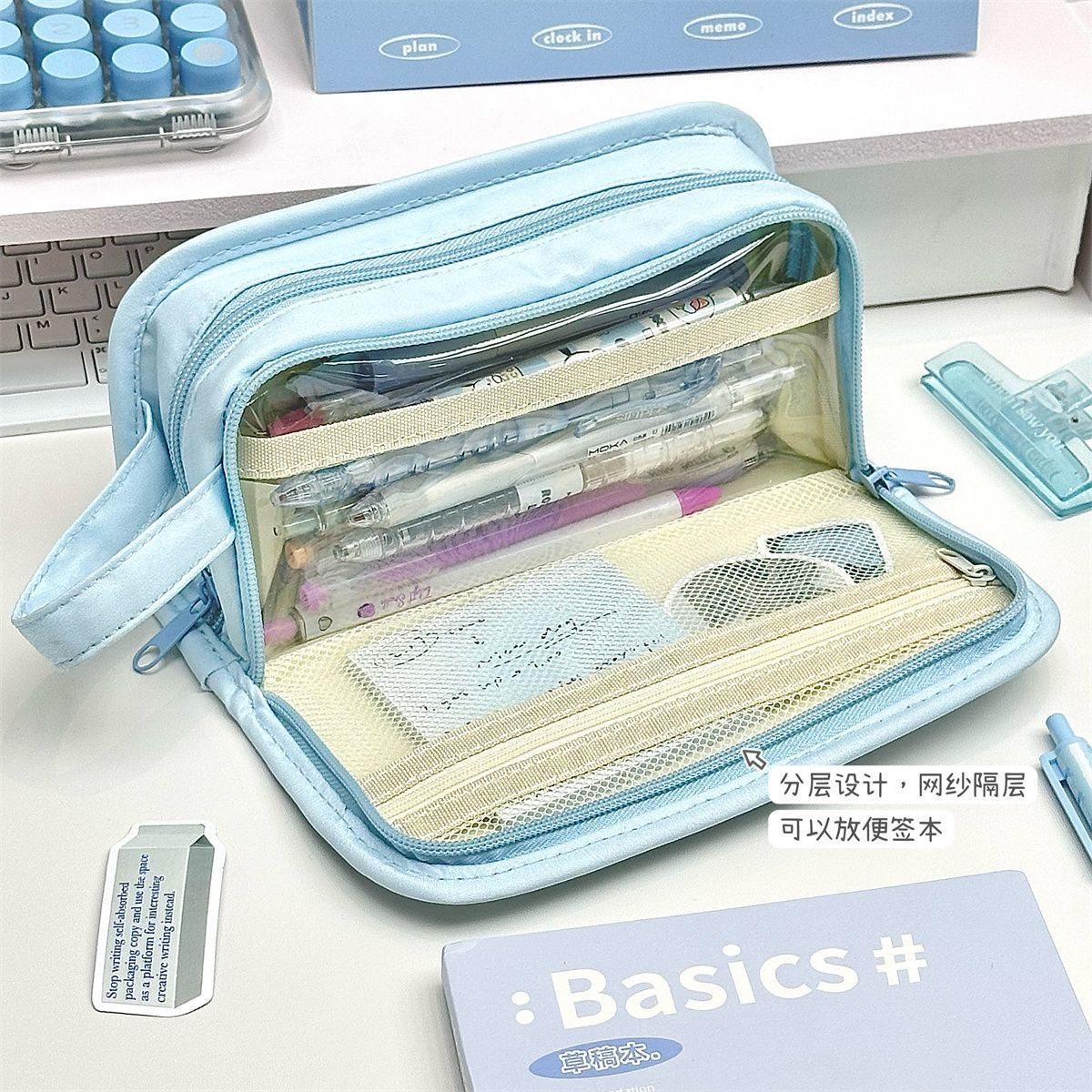 新款三只小狗印花笔袋学生ins高颜值痛包多功能大容量多层铅笔盒