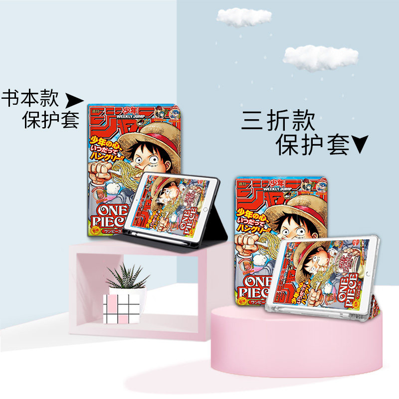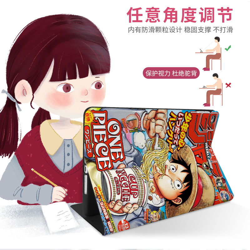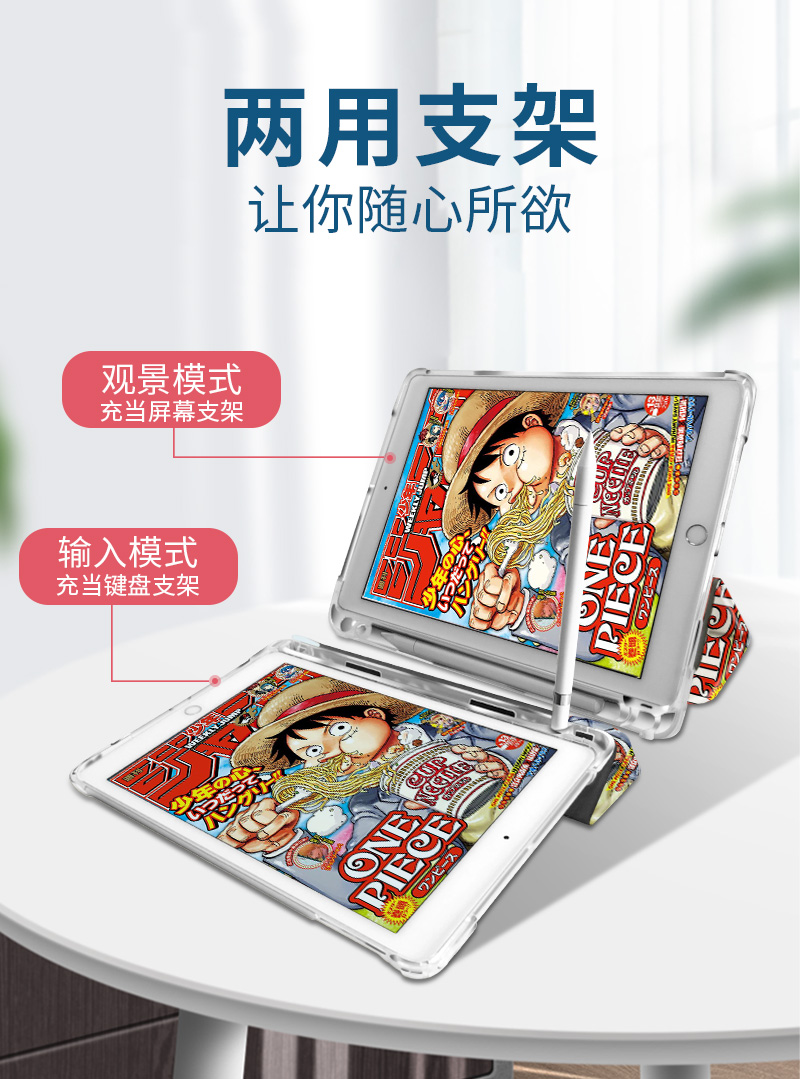 海贼王适用ipad2022三折式air5新款10.2卡通2021平板保护套pro11带笔槽mini6苹果9.7寸路飞2021壳18动漫创意