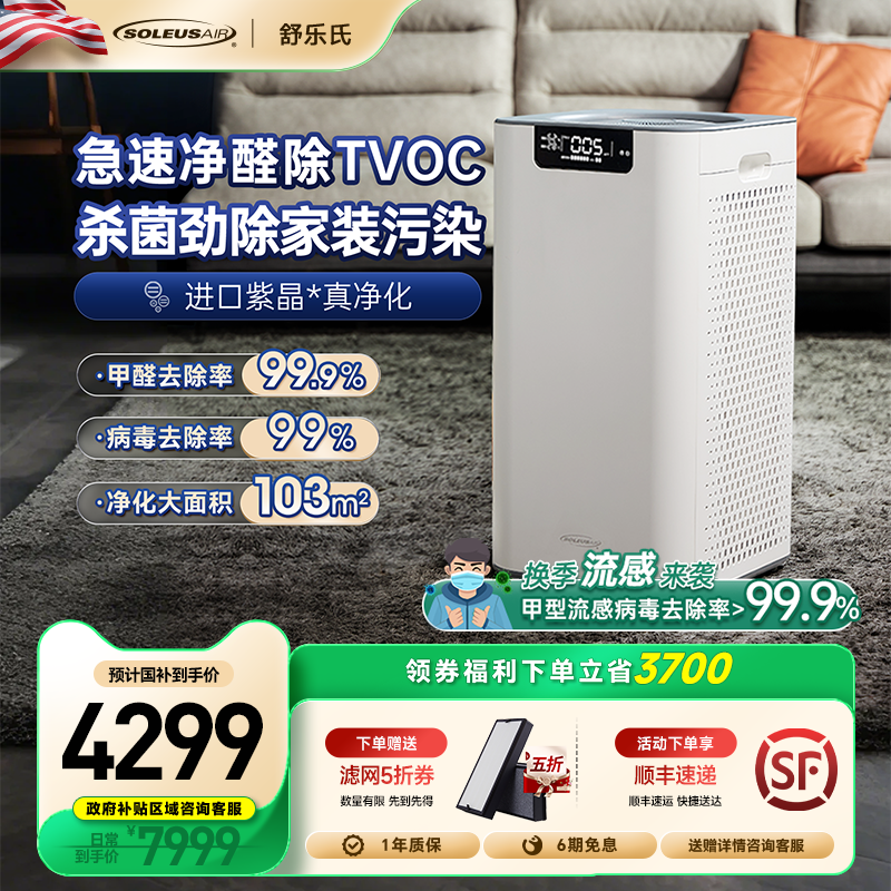 舒乐氏空气净化器家用除甲醛紫晶分解除烟味除过敏宠物净化机A02