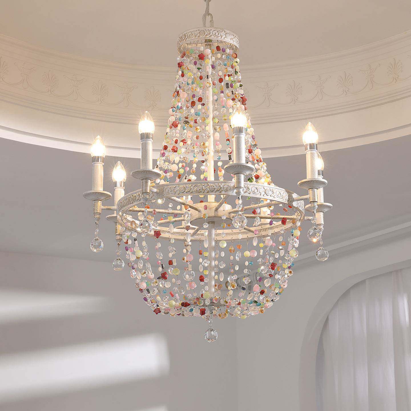 法式田园风餐厅吊灯复古彩色水晶灯波西米亚别墅庭院灯宴会厅吊灯