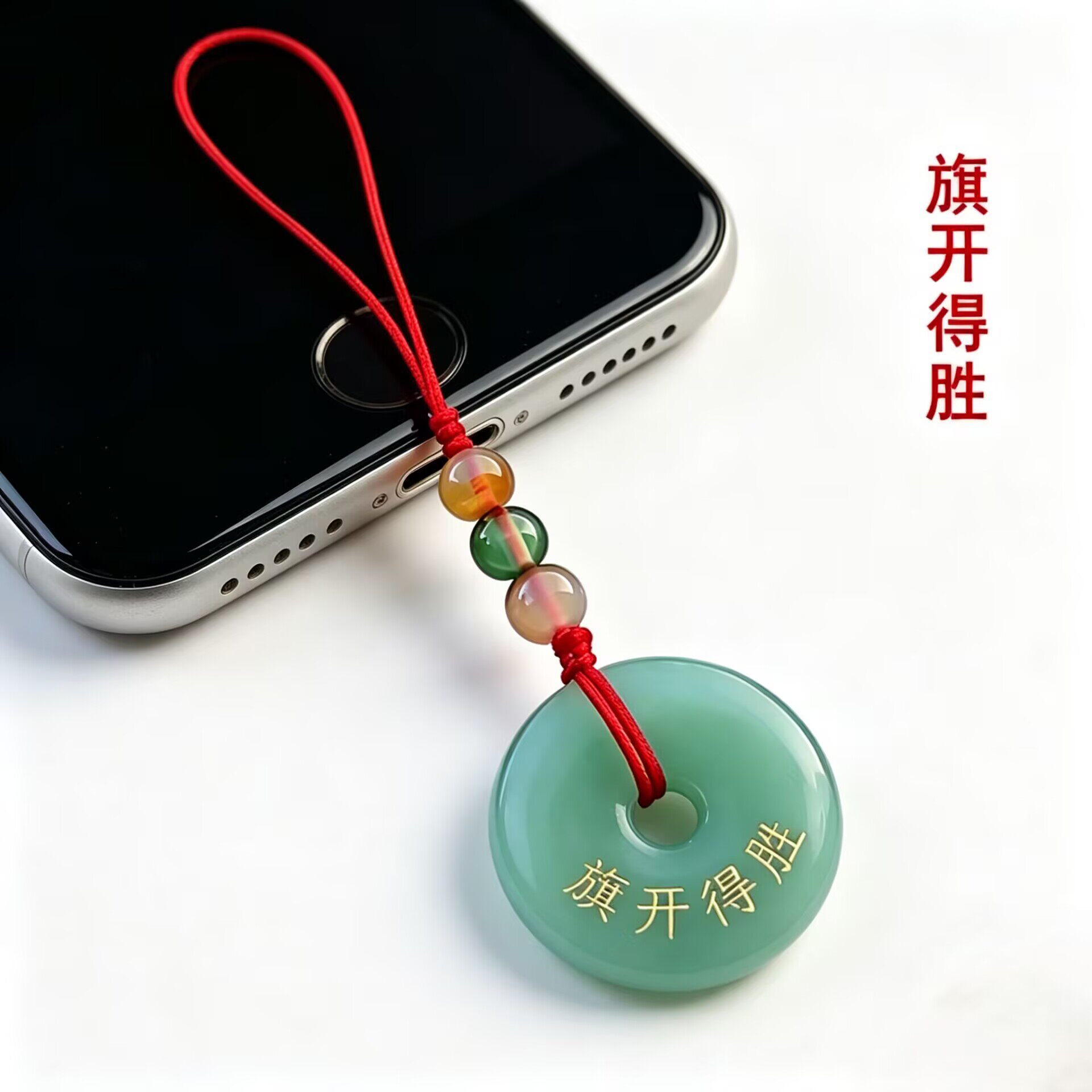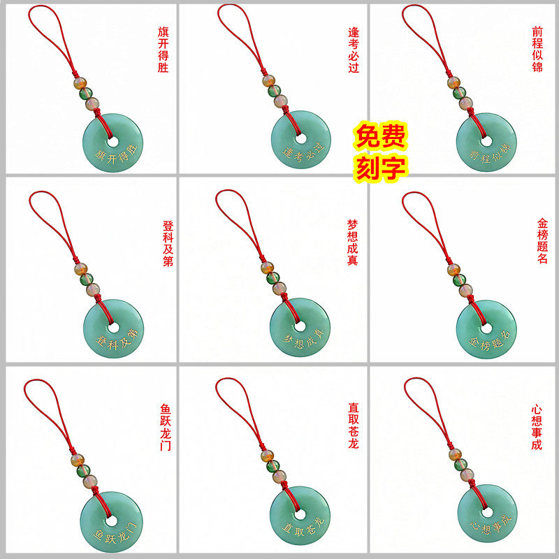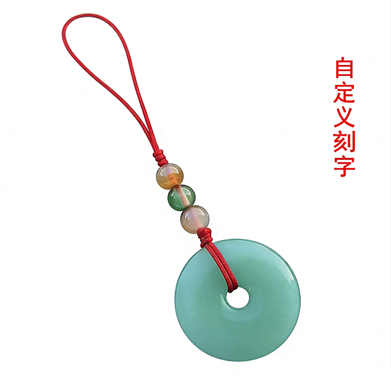 浅绿琉璃玉石平安扣手机链diy书包挂件 可定制刻字中高考毕业礼物