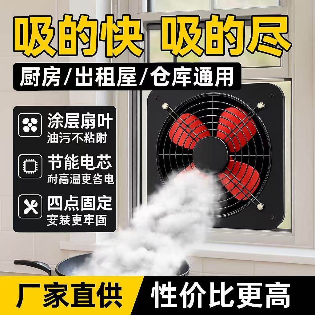排气扇厨房家用窗式排风扇强力抽风机抽油烟机静音免打孔换排烟扇