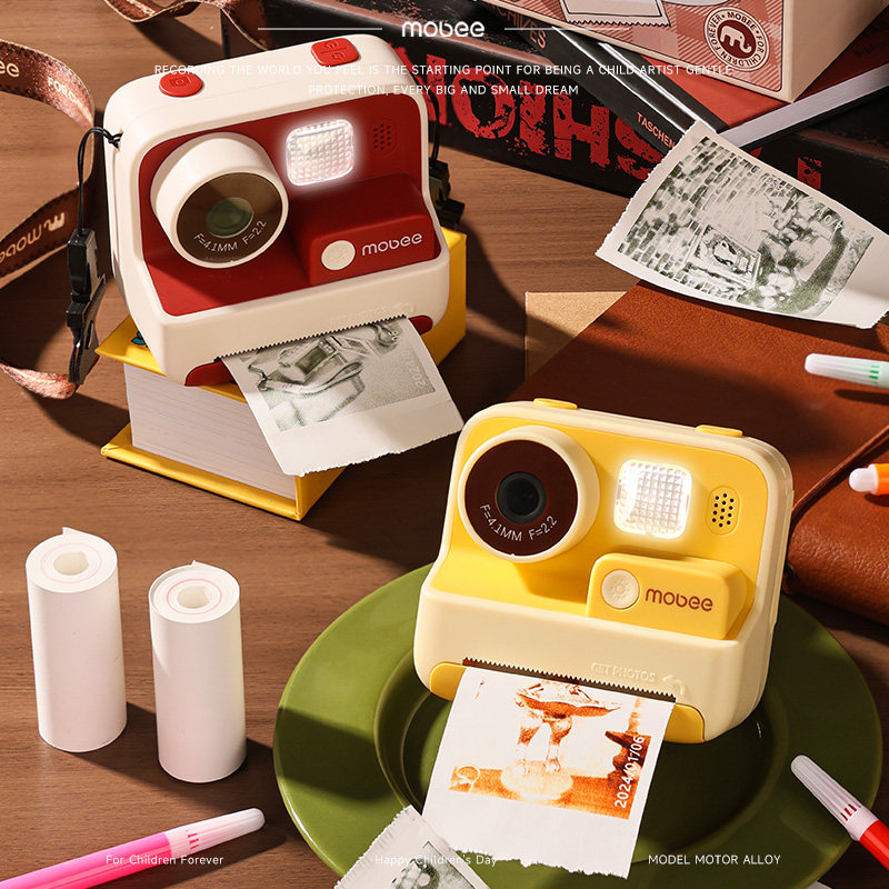 mobee复古儿童打印相机数码高清可拍照录像彩色拍立得男女孩礼物