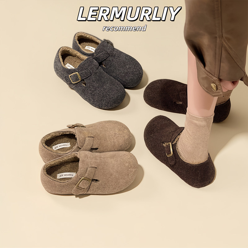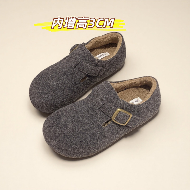 内增高厚底勃肯鞋女2025新款秋冬加绒保暖软底灰色毛毛鞋单鞋鞋子