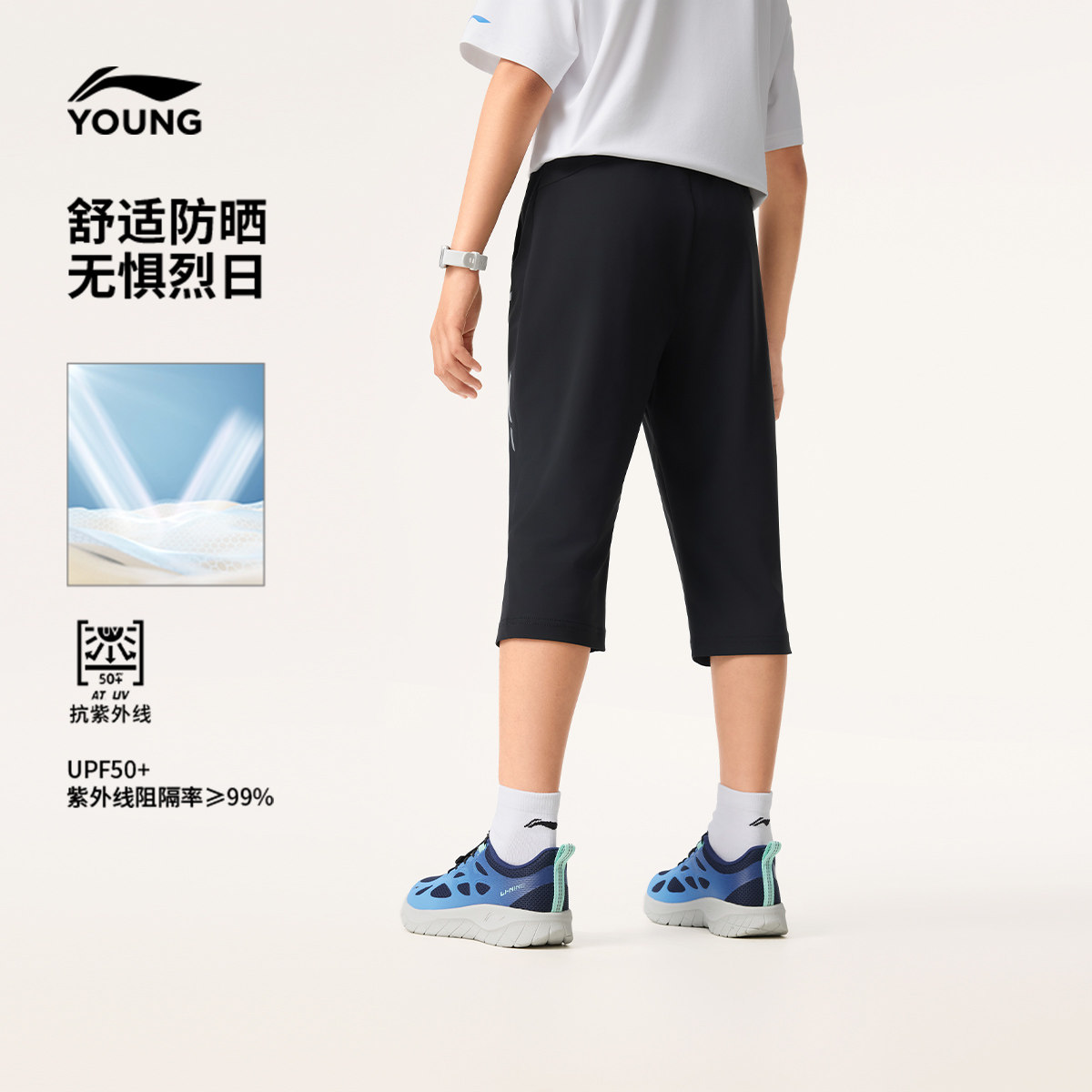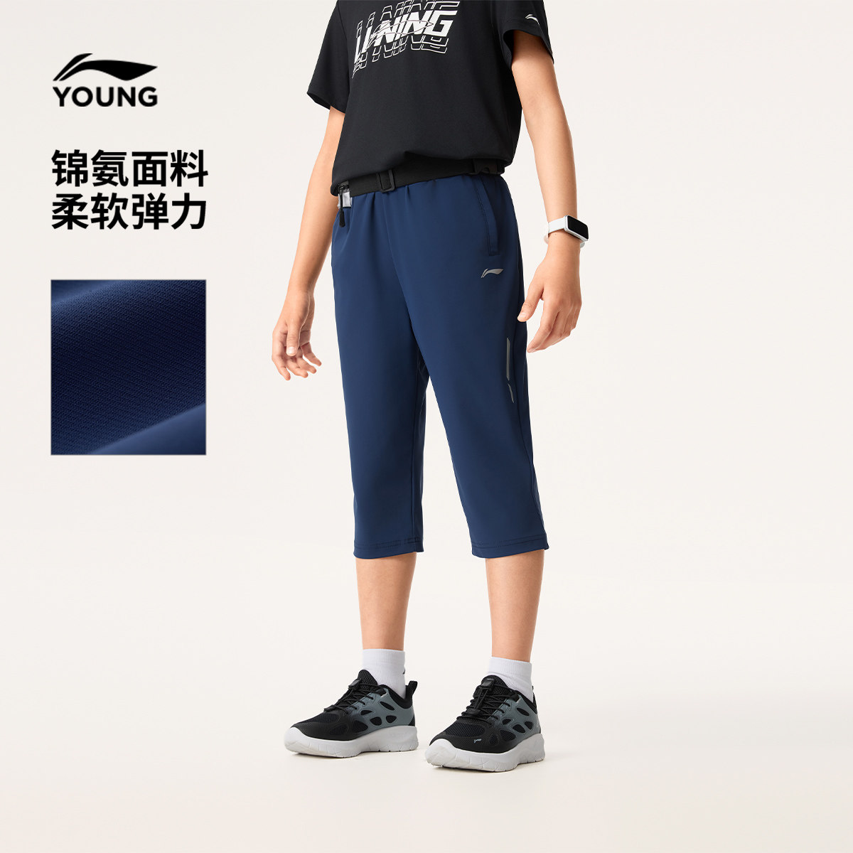 李宁童装男女小大童新款综合体能系列夏季短裤休闲百搭七分运动裤