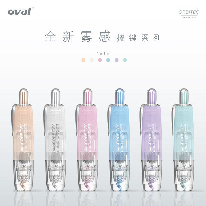 台湾OVAL欧文全新雾感修正带高颜值雾色可换替芯360度旋转头按动型涂改带6m大容量学生用笔式改正带进口替芯