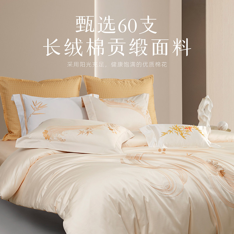 梦洁家纺60支长绒棉四件套全棉纯棉2025新款床单被套床上用品套件