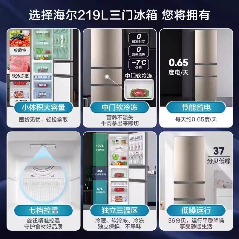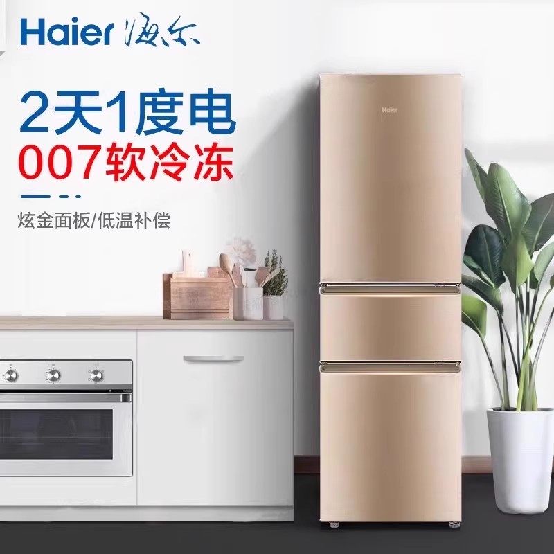 海尔小冰箱219L直冷三开门二人小户型超薄家用节能小型冰箱出租房