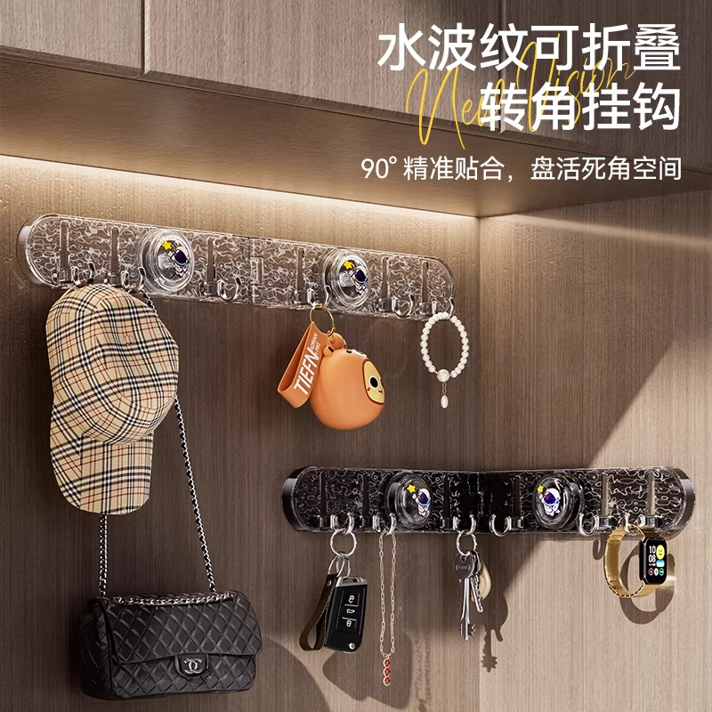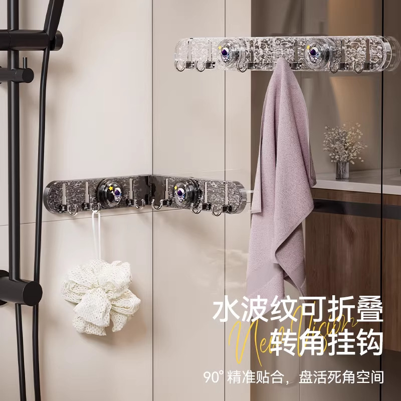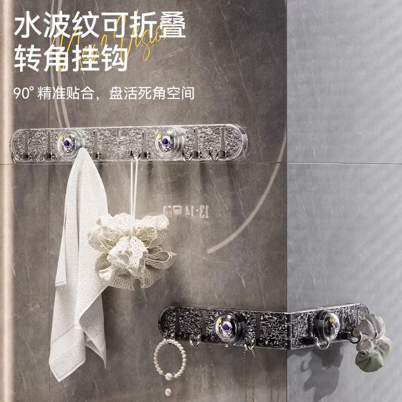 浴室吸盘挂钩免打孔毛巾架卫生间门后厨房壁挂转角收纳旋转置物