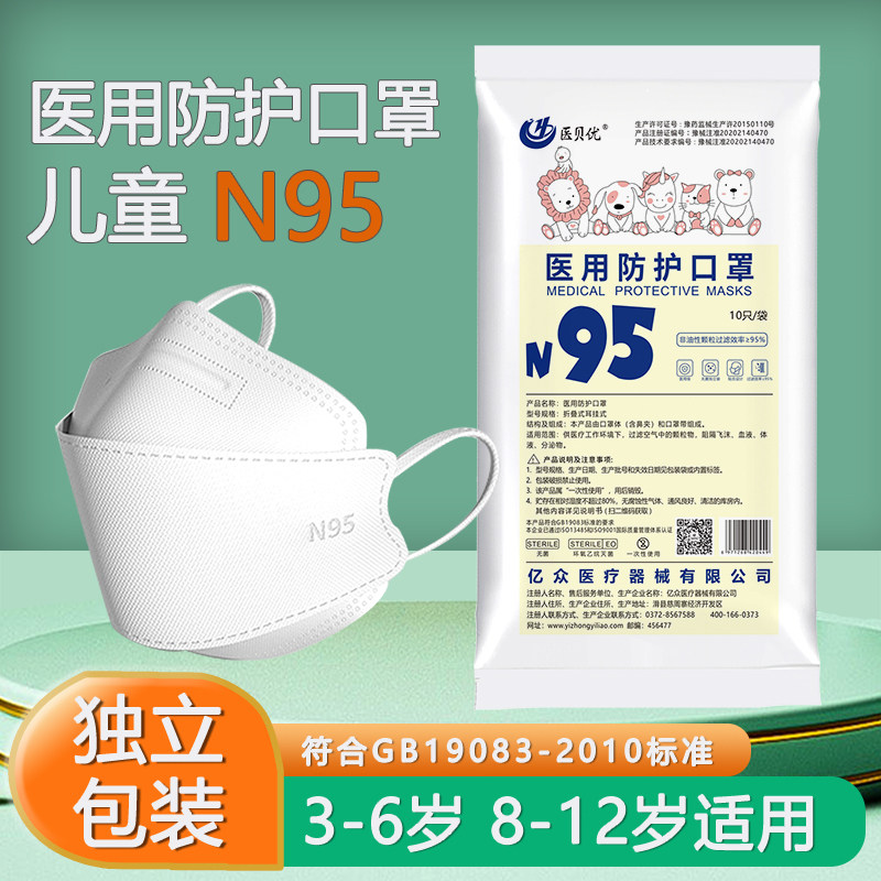 儿童n95级医用防护口罩幼儿专用4到15岁一次性医疗立体四层灭菌级