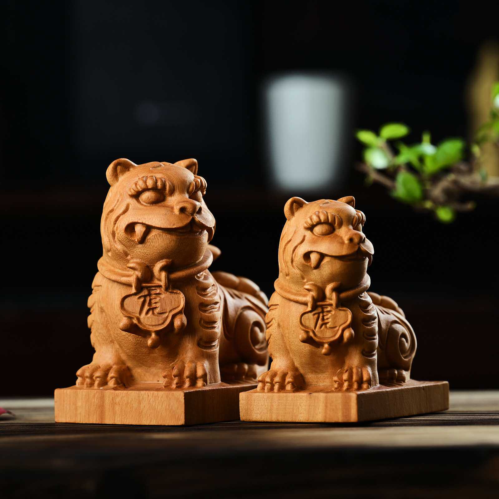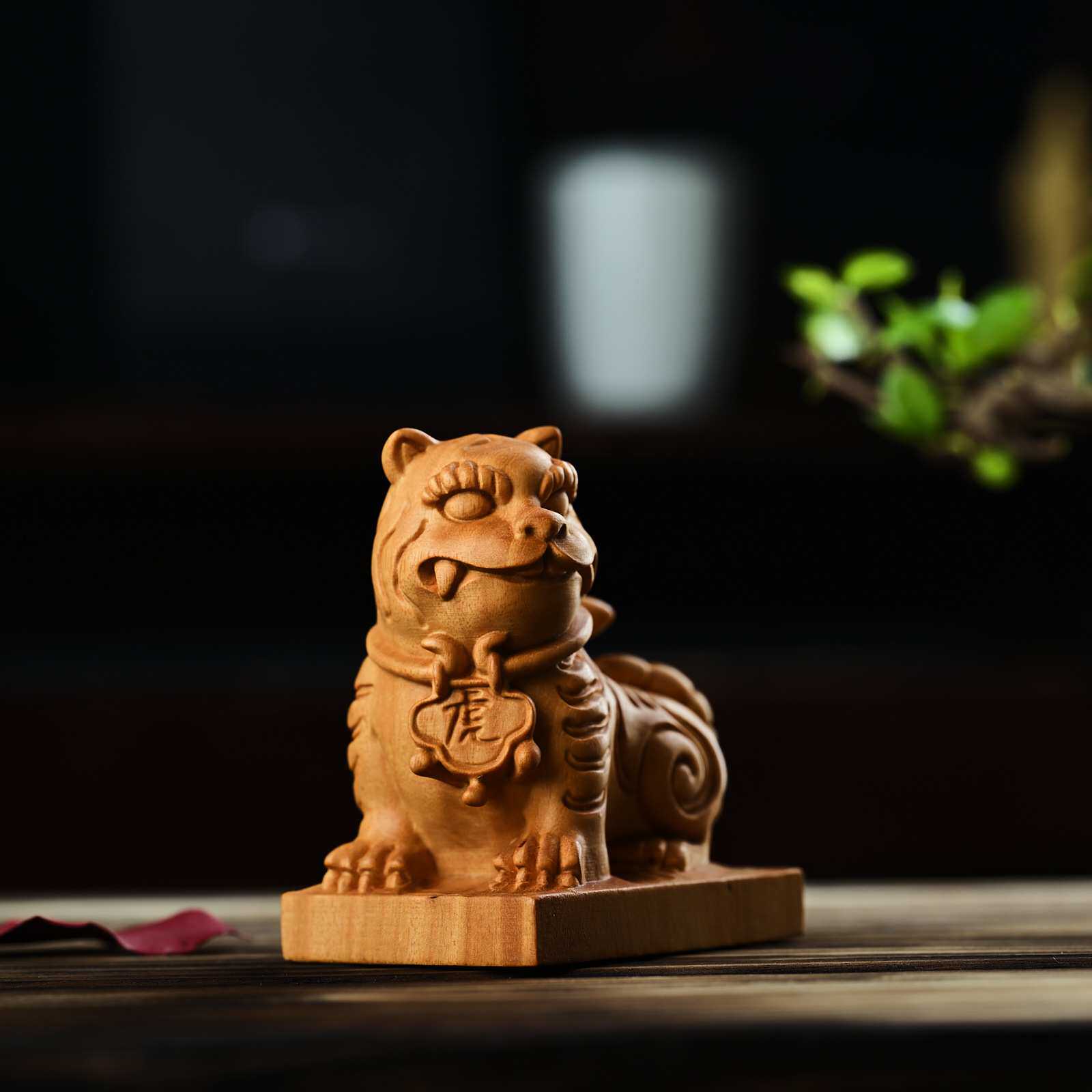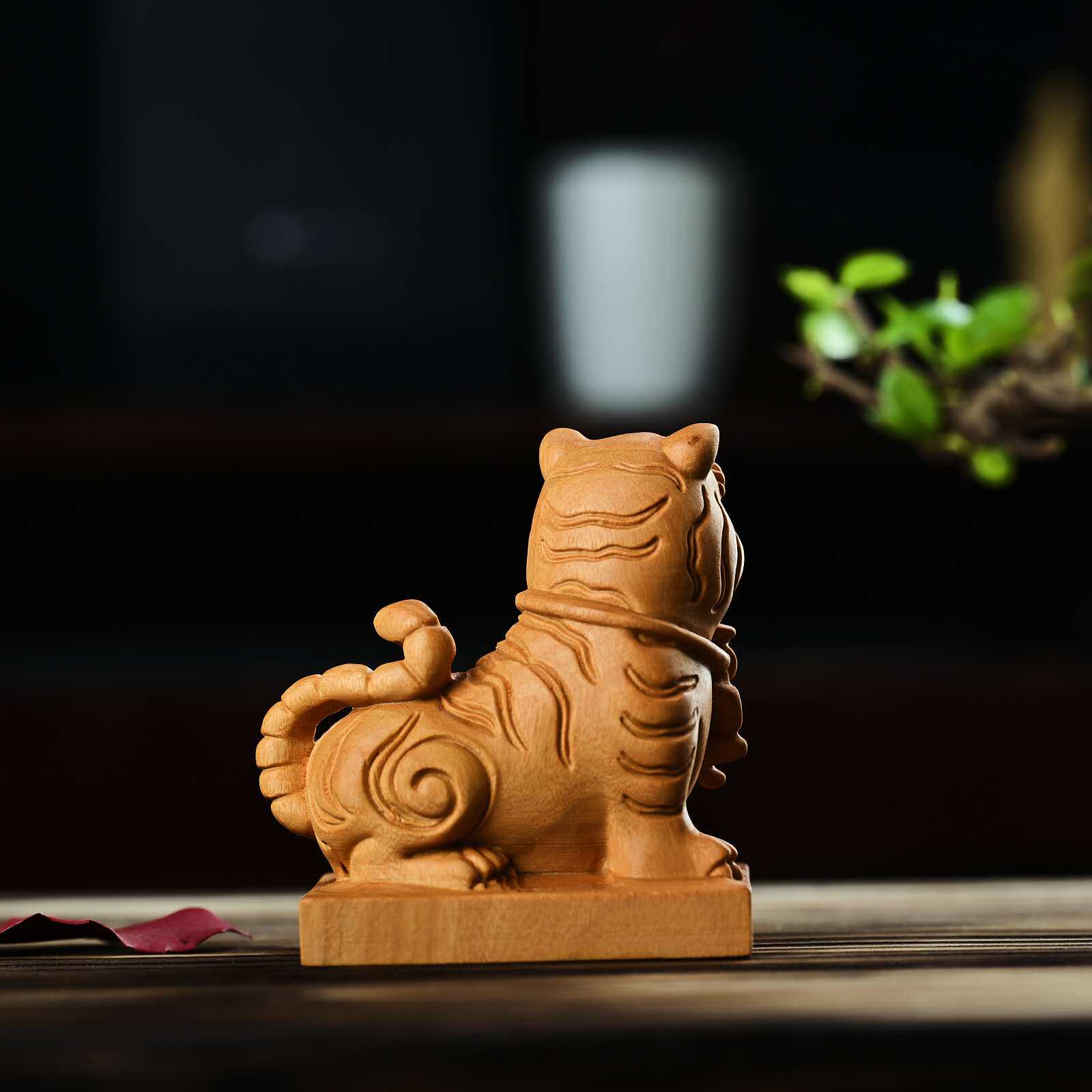 黄金檀小萌虎老虎虎头木雕虎爷手把件随身把玩实木家居客厅小摆件