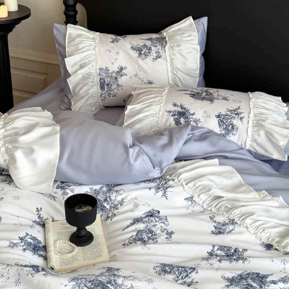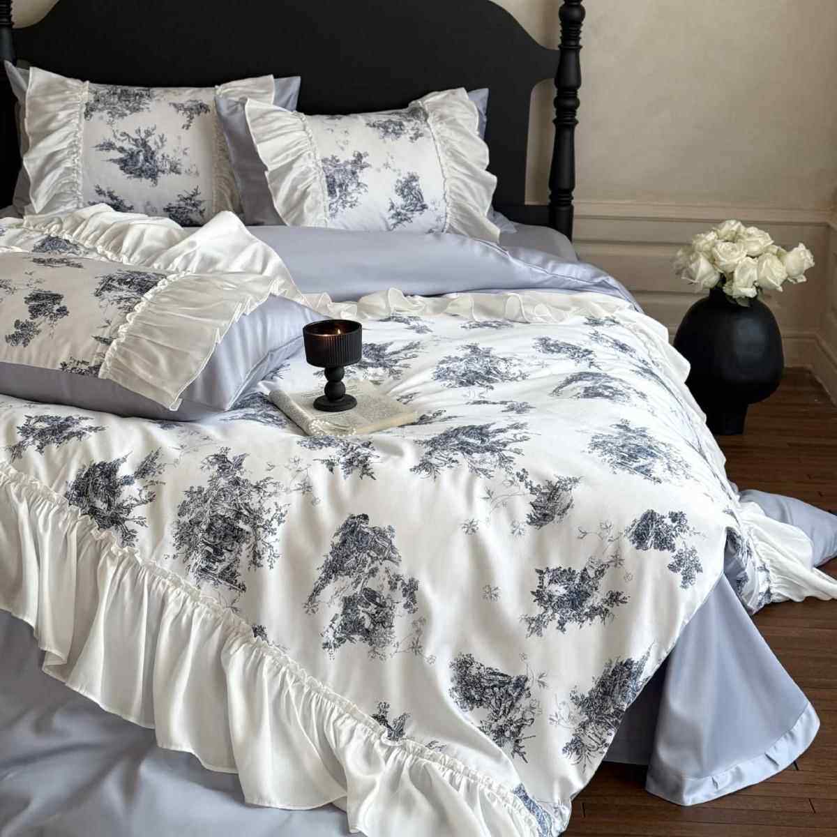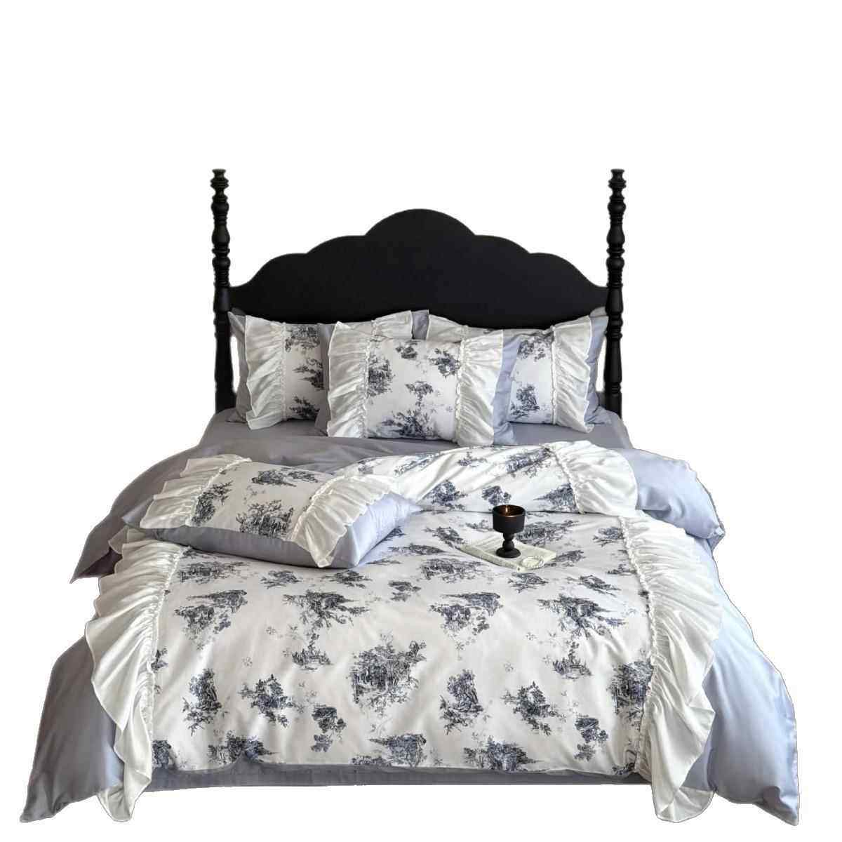 夏季法式冰丝莱赛尔纤维四件套数码印花雪纺凉感裸睡床单被套床品