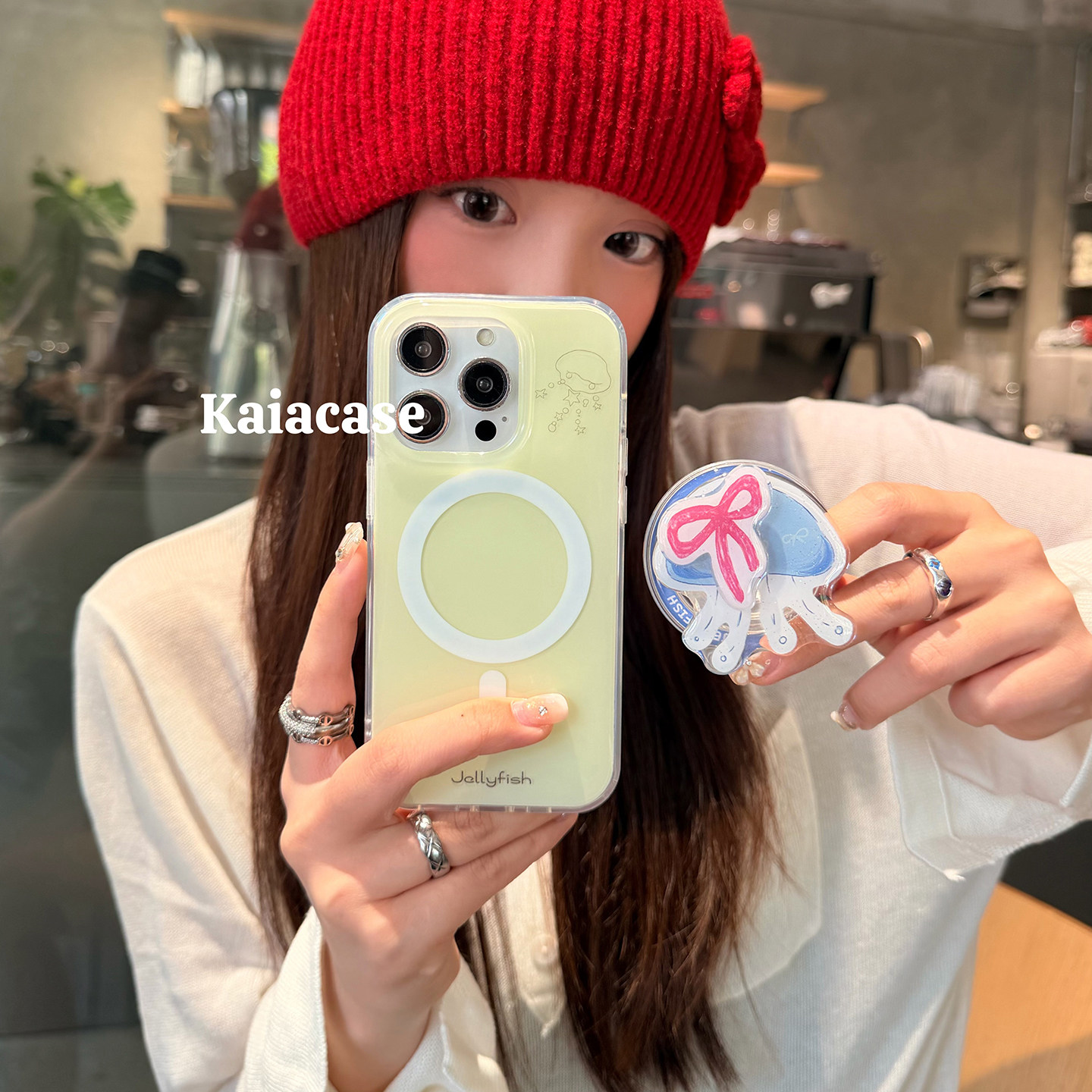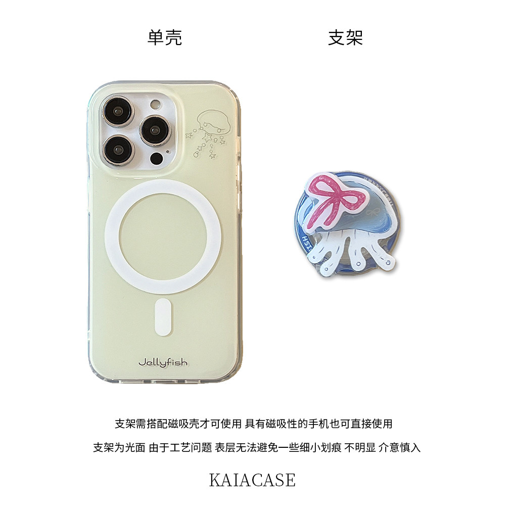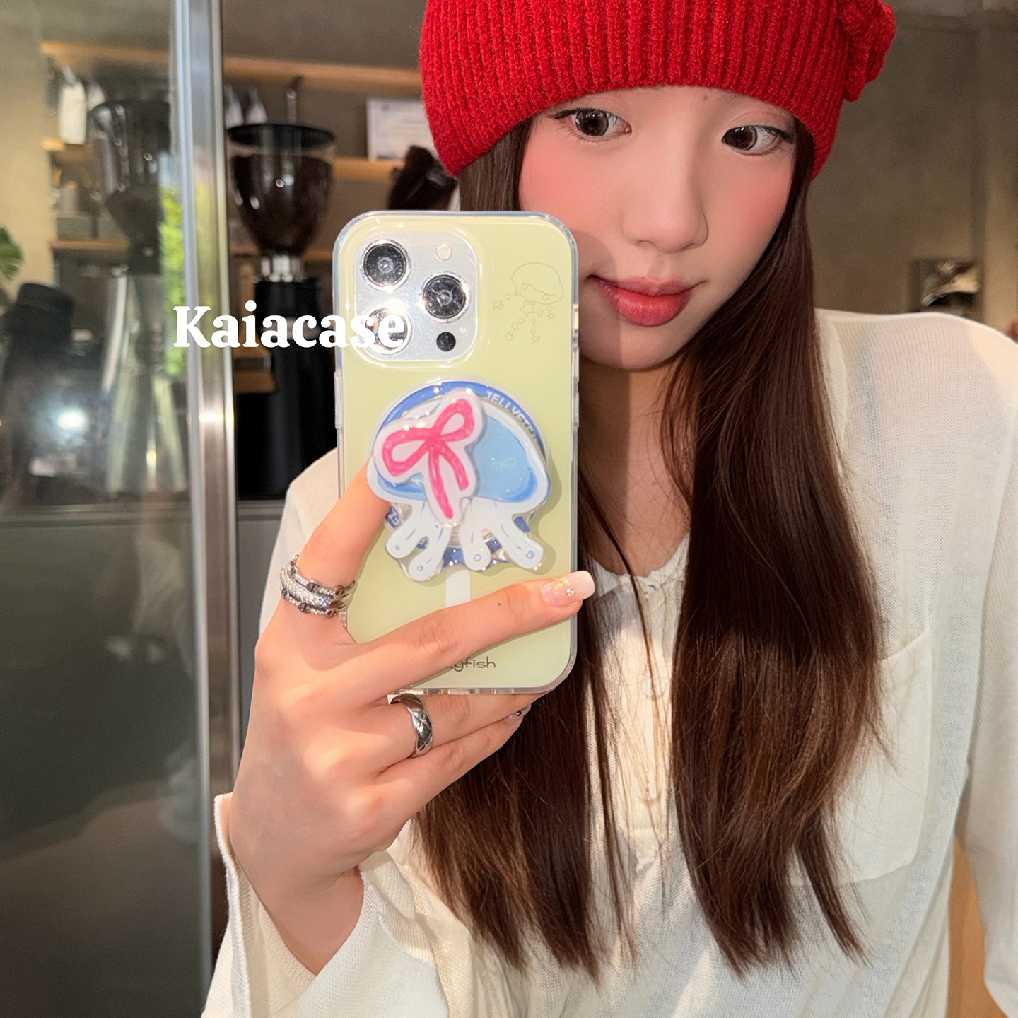 kaia赵露思同款ins旋转蝴蝶结水母适用苹果17promax手机壳iphone16pro新款15女14pro磁吸支架15pro防摔手机套