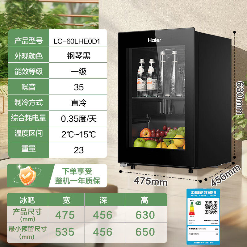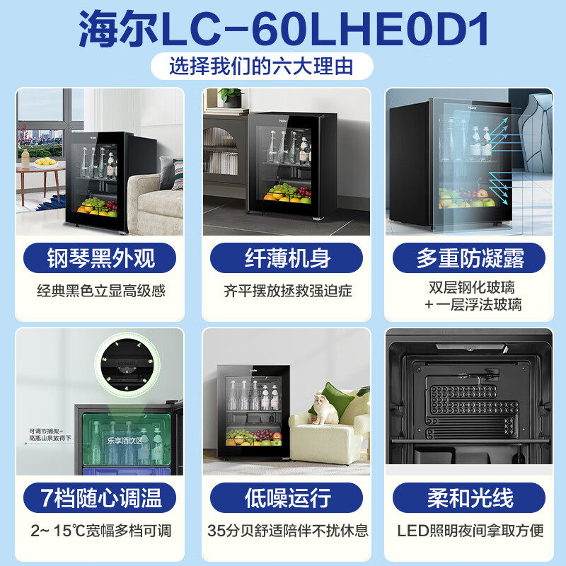 海尔冰吧60升家用客厅茶叶柜饮料柜办公室冷藏时尚小冰箱