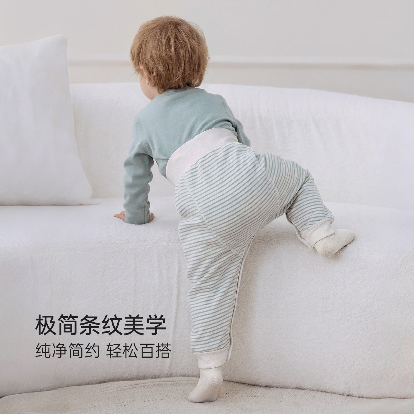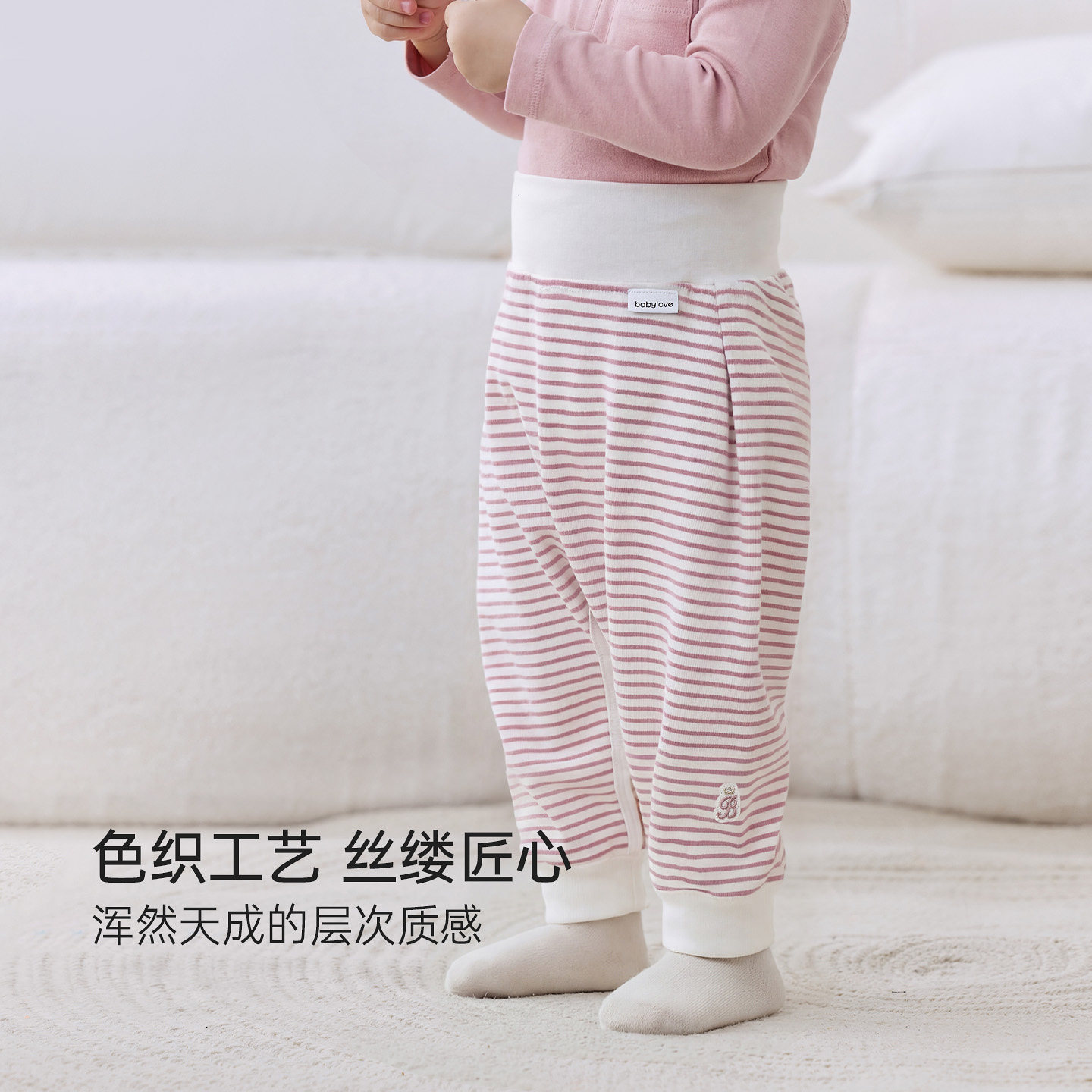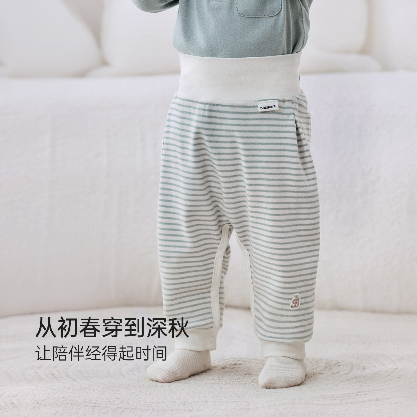 babylove婴幼儿高腰大pp裤男女宝宝春秋棉睡裤弹力百搭条纹束脚裤