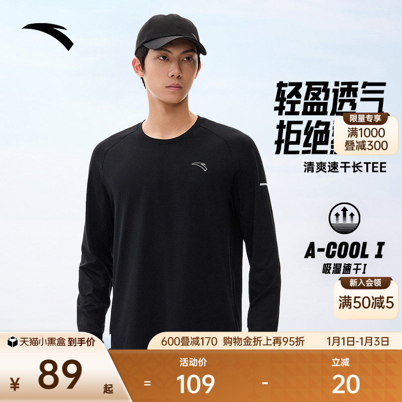 安踏速干T丨透气长袖t恤男士冬季跑步速干衣训练羽毛球运动服上衣