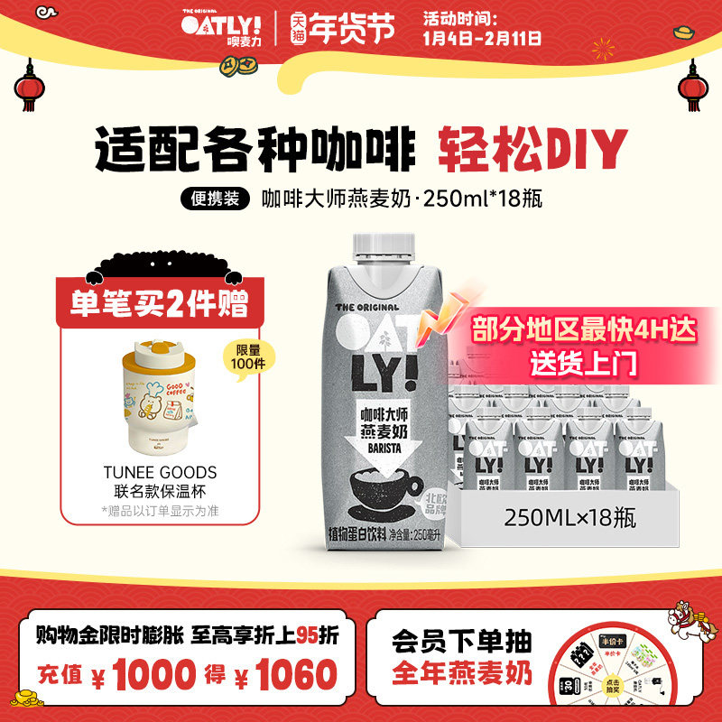OATLY噢麦力咖啡大师燕麦奶250ML*18瓶整箱植物蛋白饮料咖啡伴侣