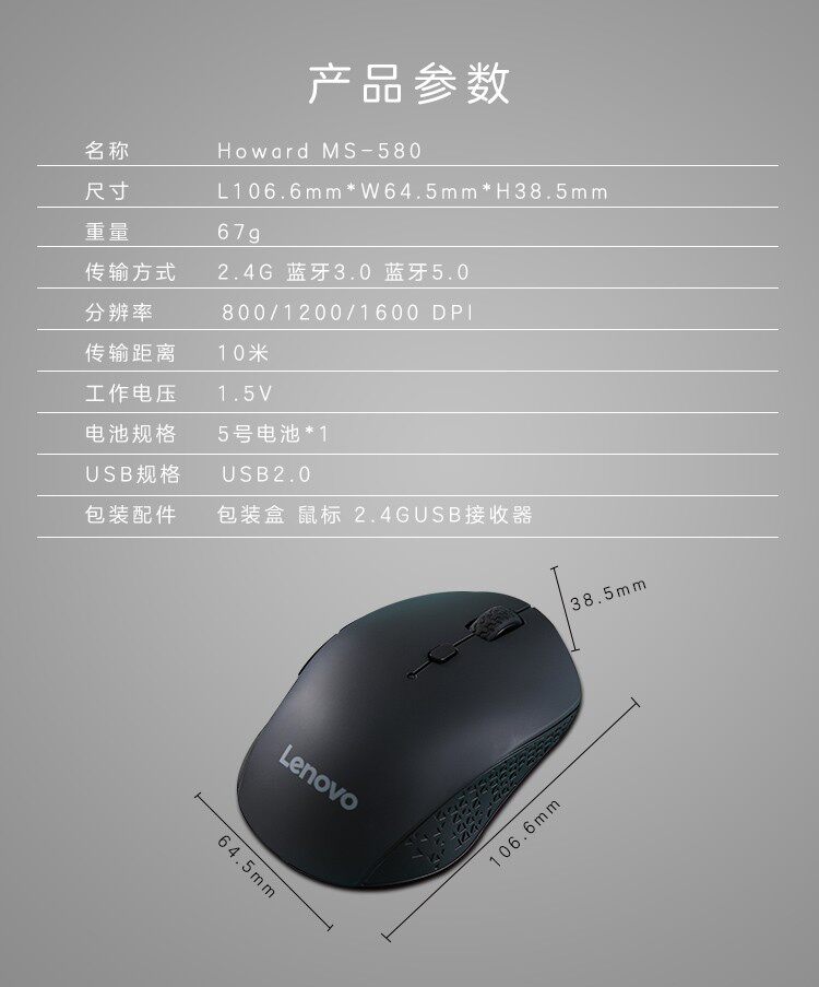 联想双模蓝牙无线鼠标Howard笔记本平板电脑办公家用便携游戏鼠标