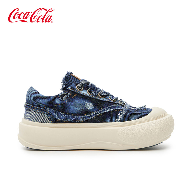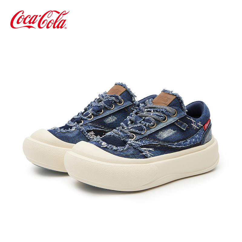 Coca-Cola/可口可乐 乐歪歪复古水洗牛仔防滑耐磨休闲大头板鞋