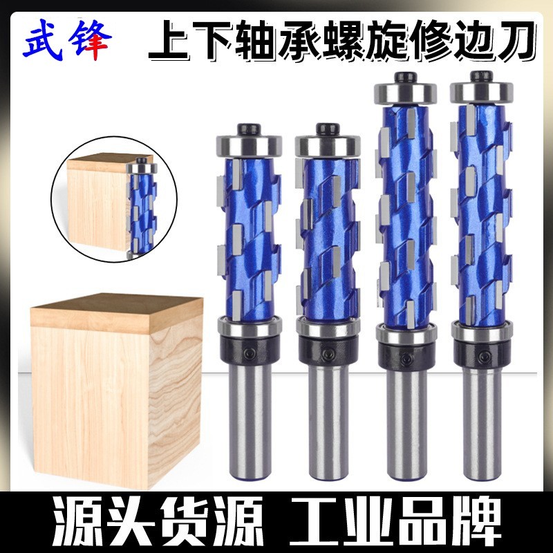 木工双轴承螺旋修边刀修边机仿形铣刀具上下轴承雕刻机刀头1/2柄