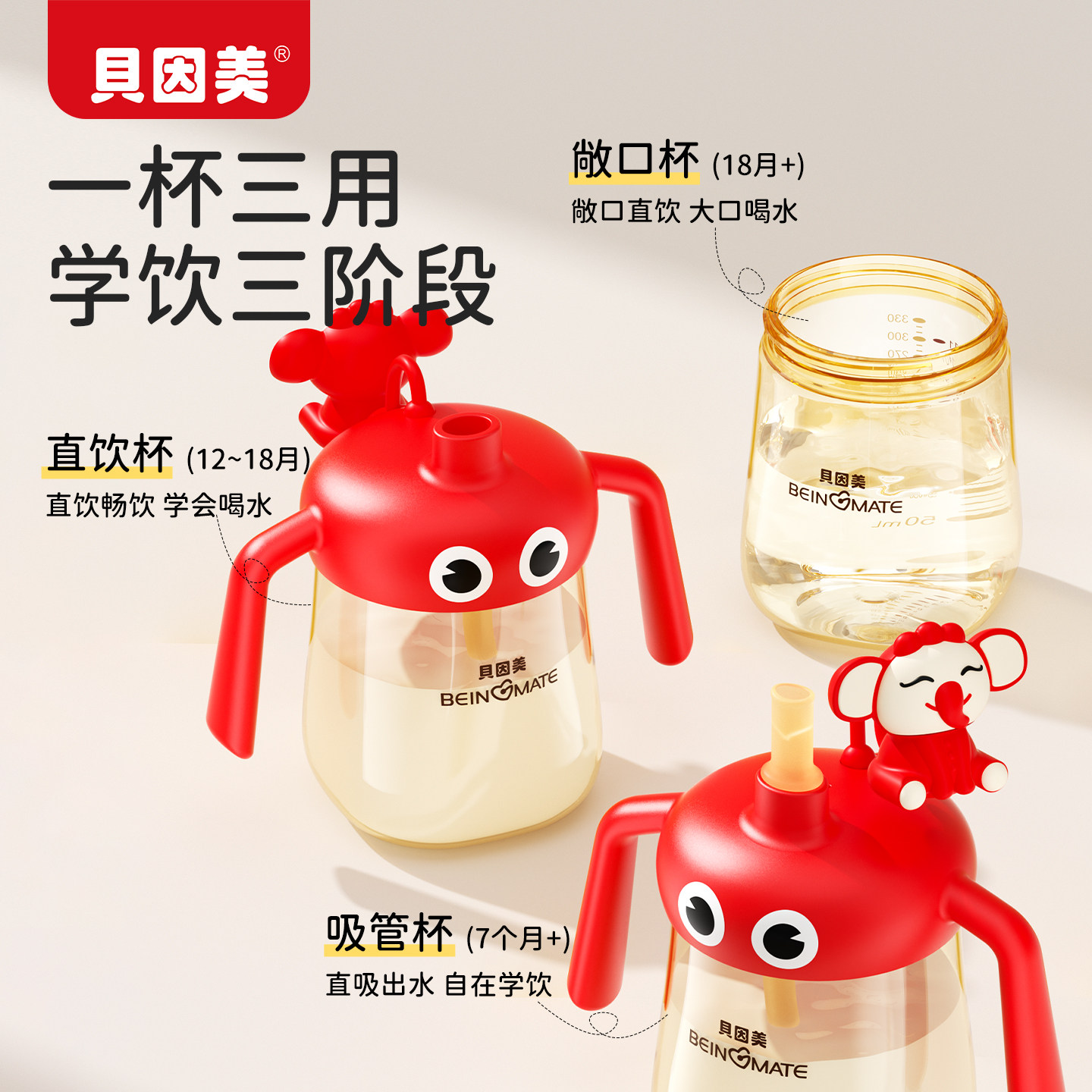 贝因美儿童牛奶杯1-3岁以上宝宝喝奶瓶PP刻度直饮吸管水杯防摔