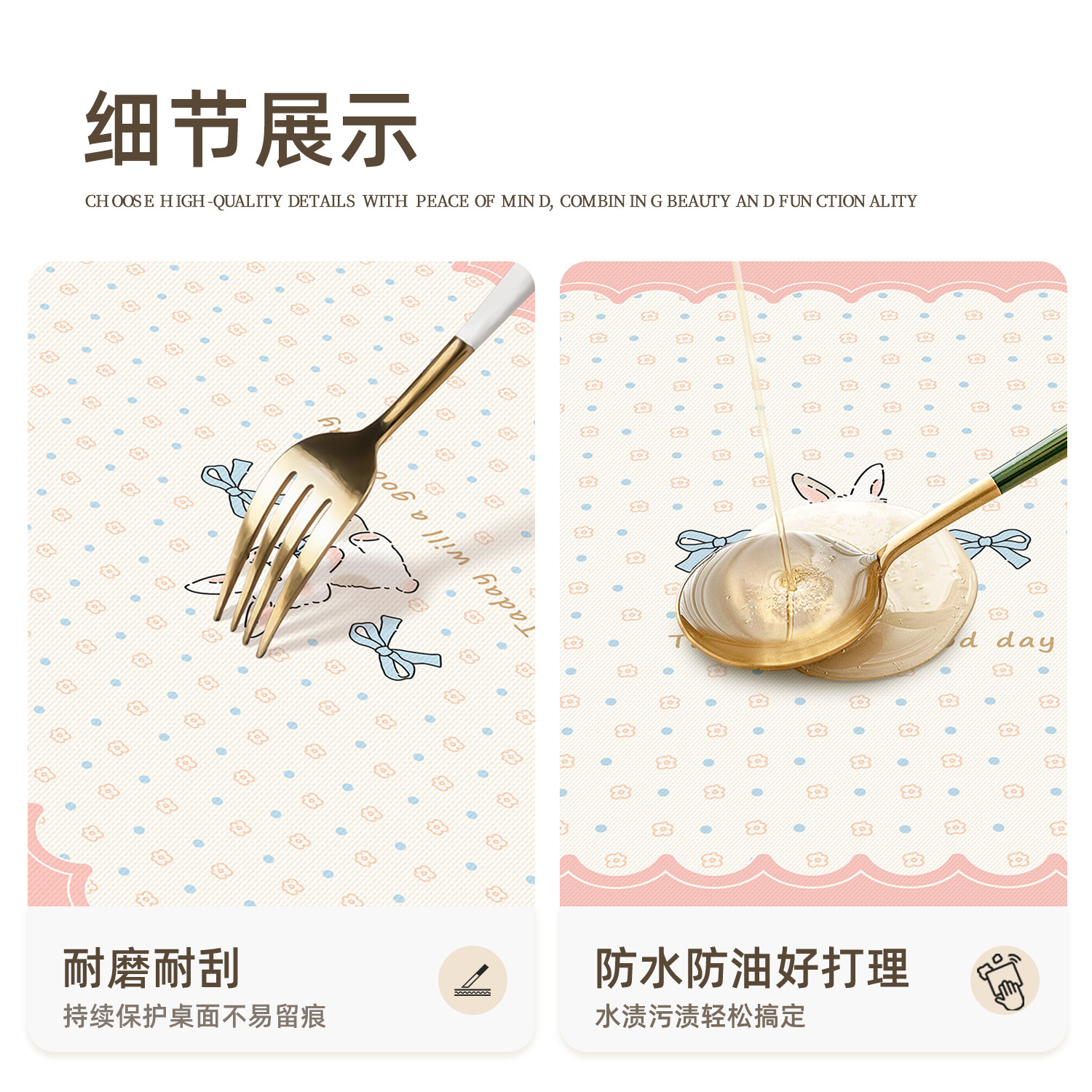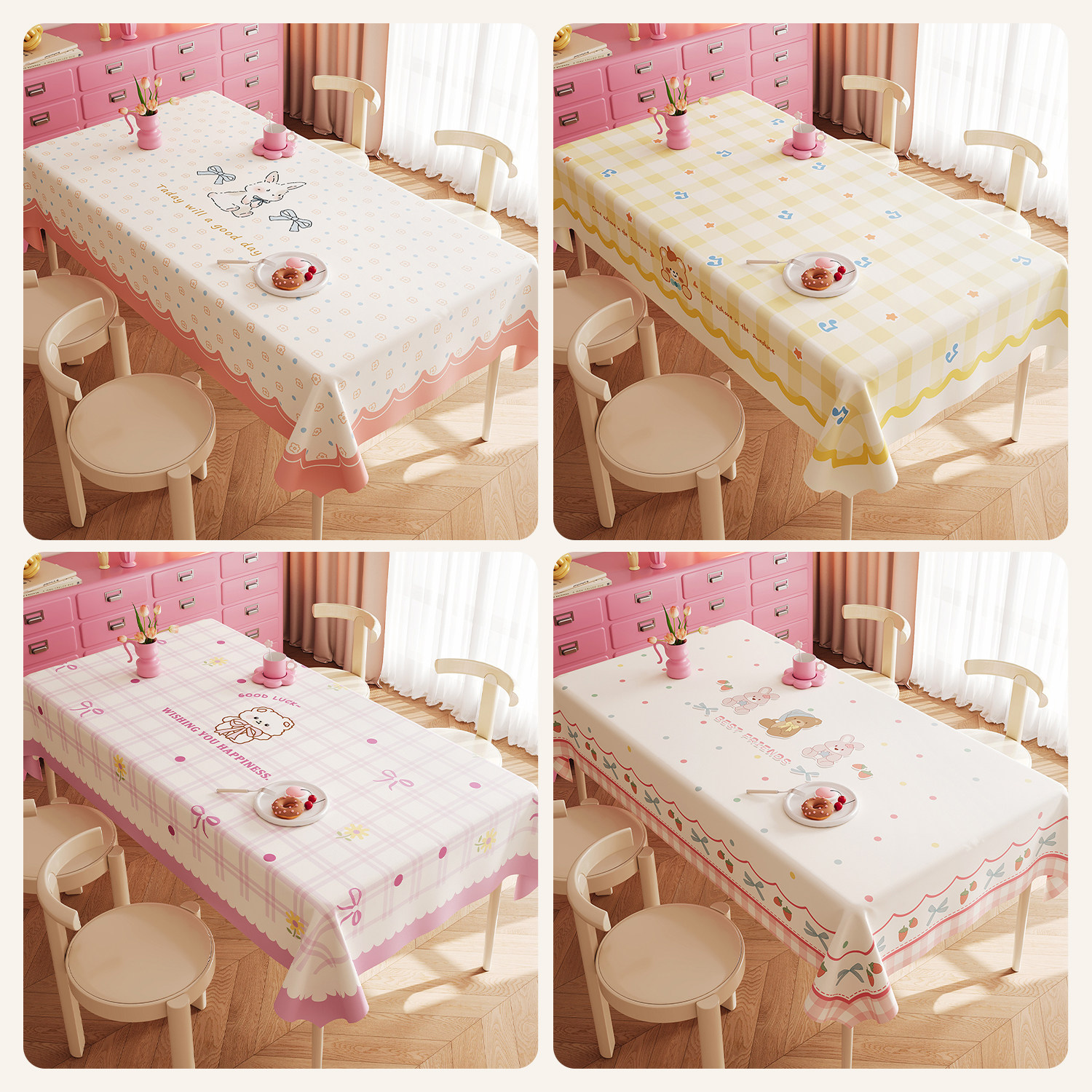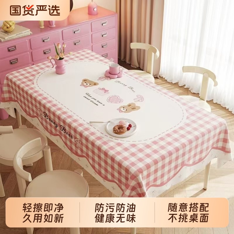粉色餐桌桌布防水防油免洗2025新款轻奢高级感卡通长方形茶几台布