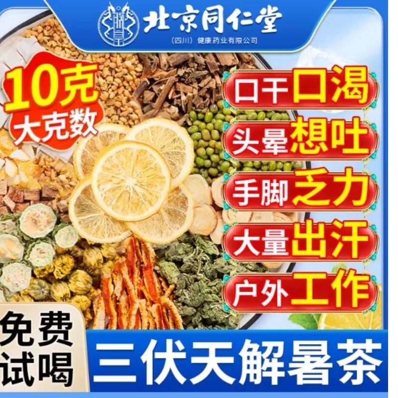 北京同仁堂解暑茶夏季清热防中暑薄荷凉茶降温火三伏天清凉包