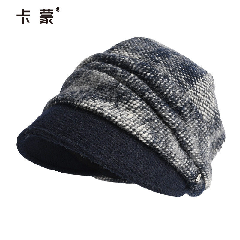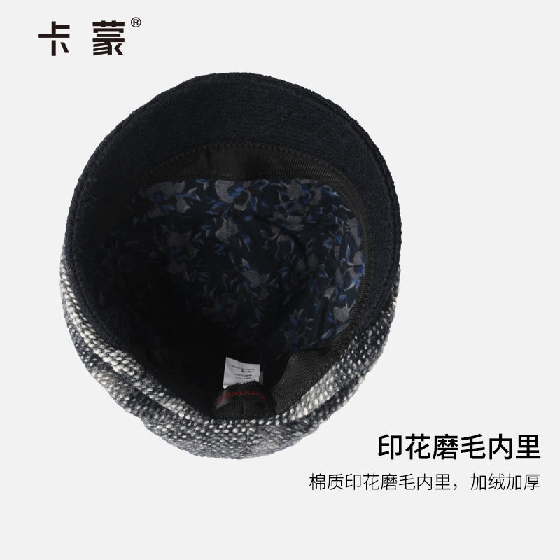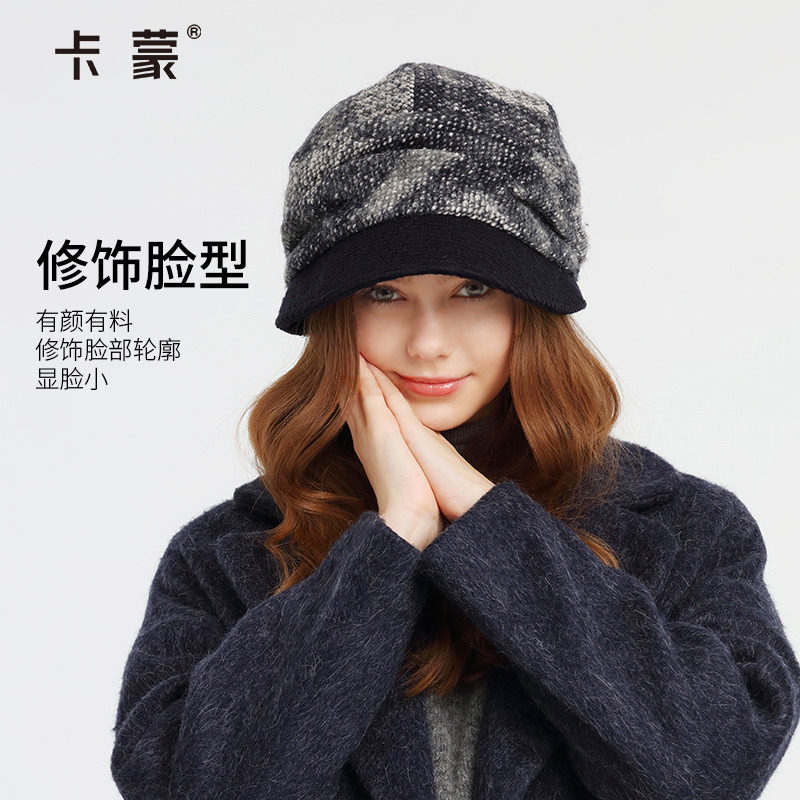 卡蒙冬款帽子女士格子贝雷帽拼接毛呢帽子韩版时尚堆堆帽修饰脸型