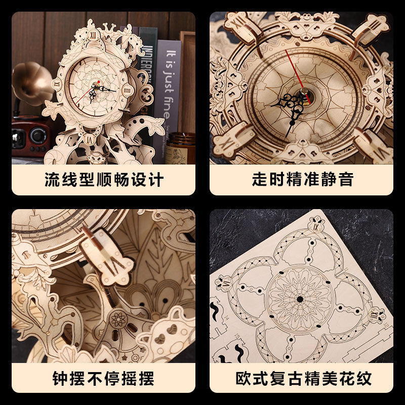 挂钟拼图木质时钟拼装模型立体拼图座钟益智创意玩具摆件