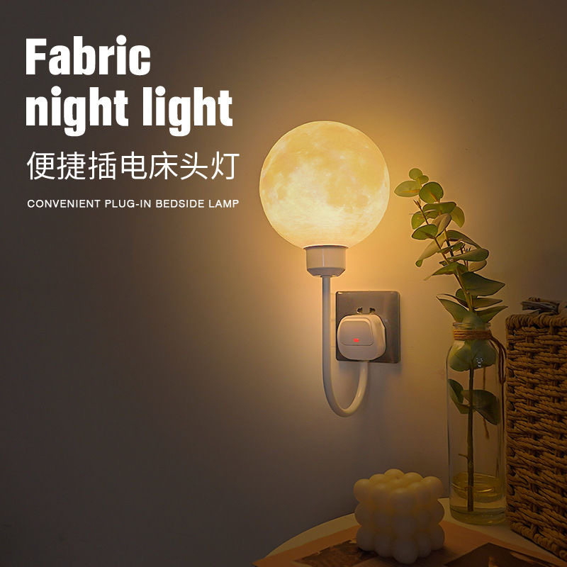 便携床头护眼布艺小夜灯插电插座卧室睡眠台灯床头灯月球壁灯氛围