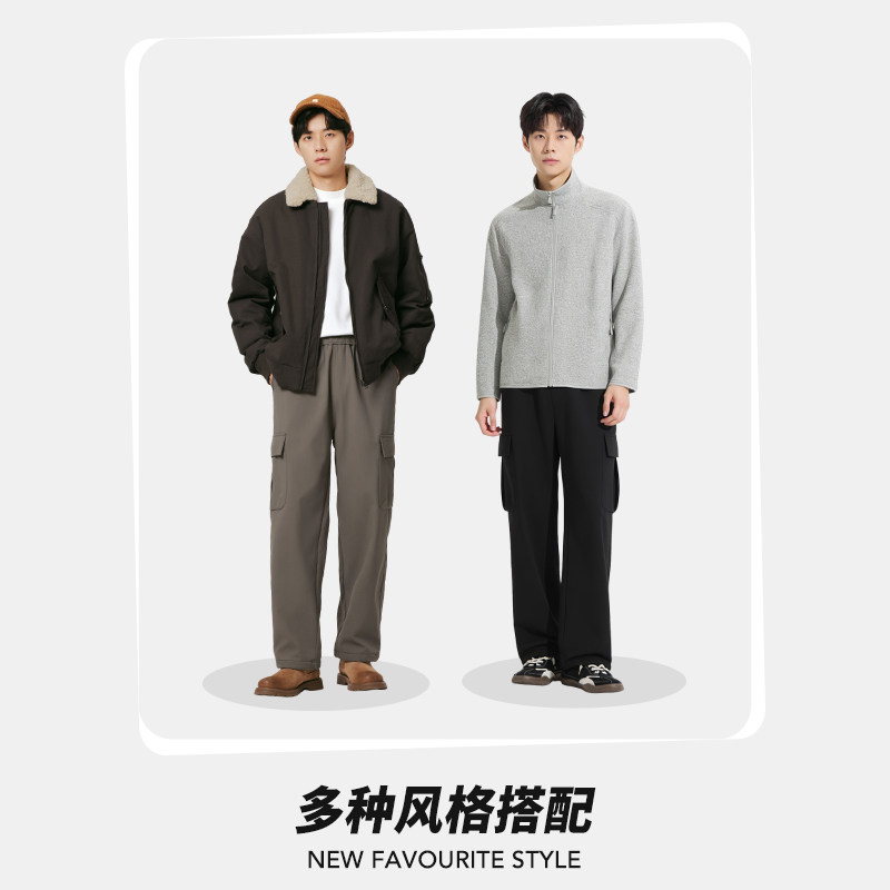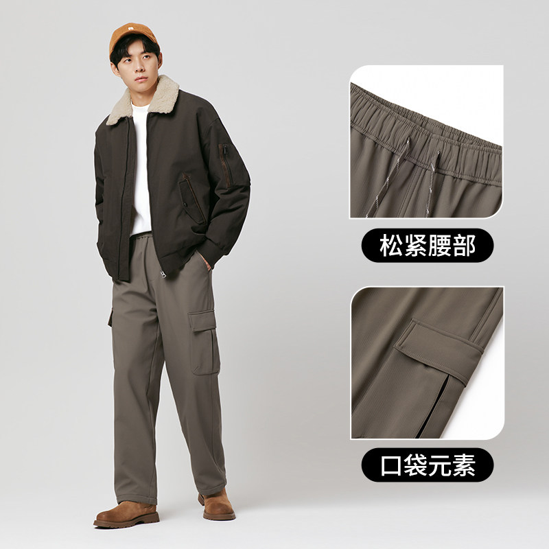 BENPANDA 2025冬季加绒防泼水休闲裤户外登山伞兵直筒裤子男新款