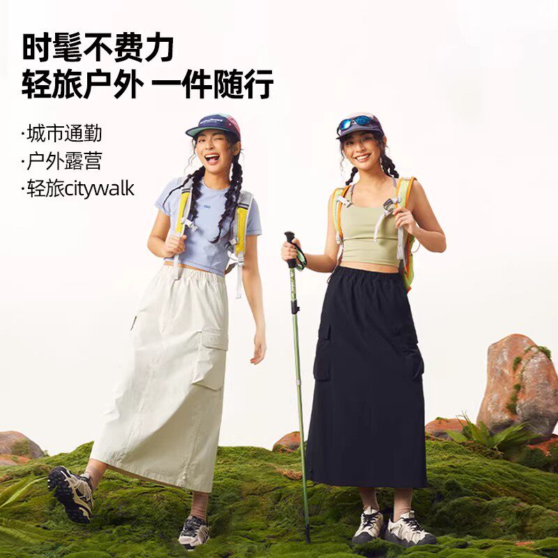 黄山联名骆驼26春夏新款工装风高腰A字半身裙女大口袋速干显瘦