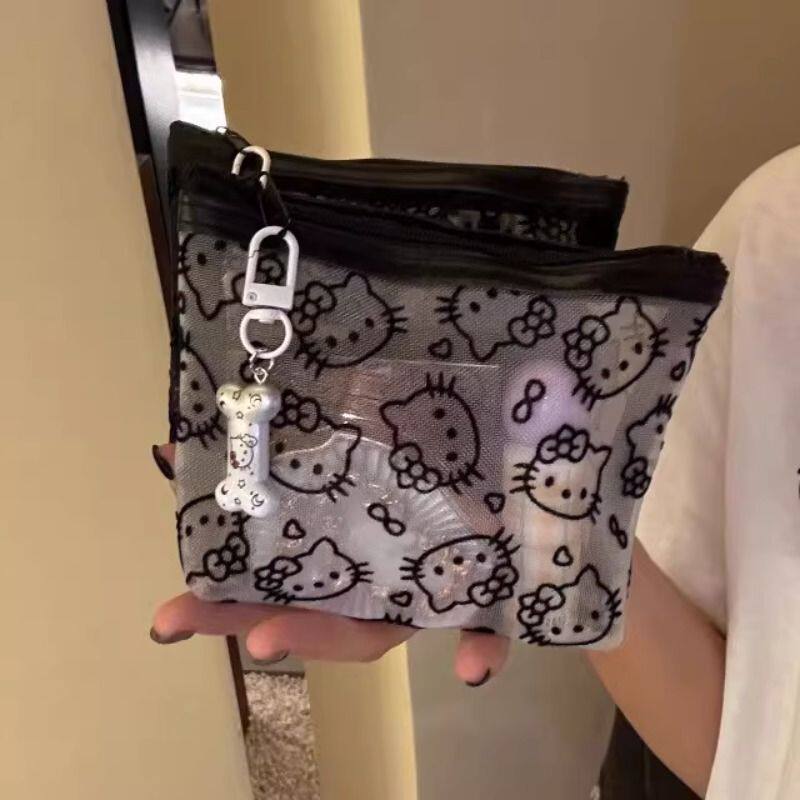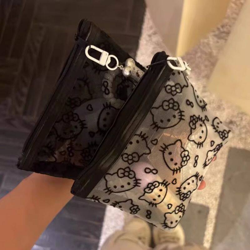 可爱kitty猫网纱化妆包透明手拿便携外出旅行收纳包随身简约包女