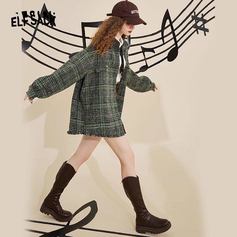 妖精的口袋粗花呢绿色小香风外套女2025年冬季新款千金风新年战袍