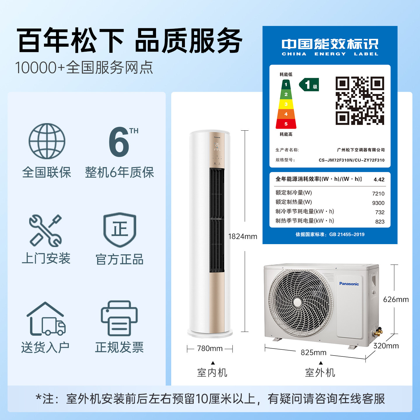 【国补】松下空调3匹新一级能效冷暖圆柱立式柜机客厅JM72F310