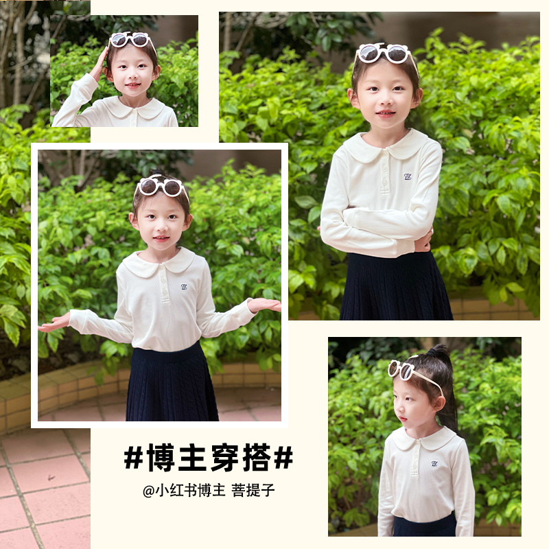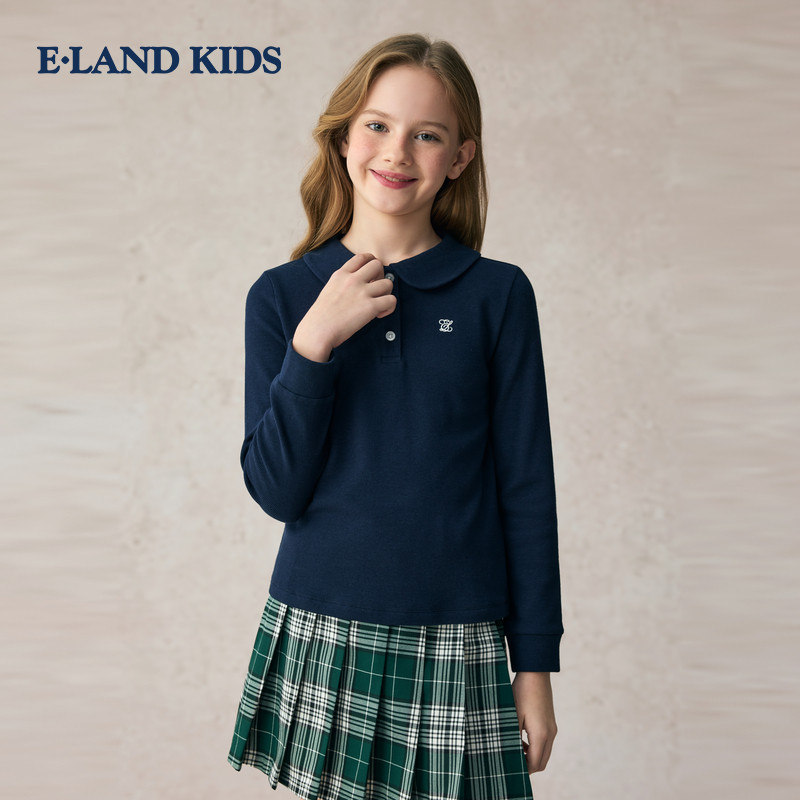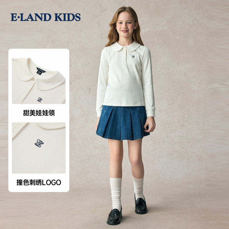 eland kids衣恋童装女童POLO衫2025年秋季新品学院风儿童长袖T恤
