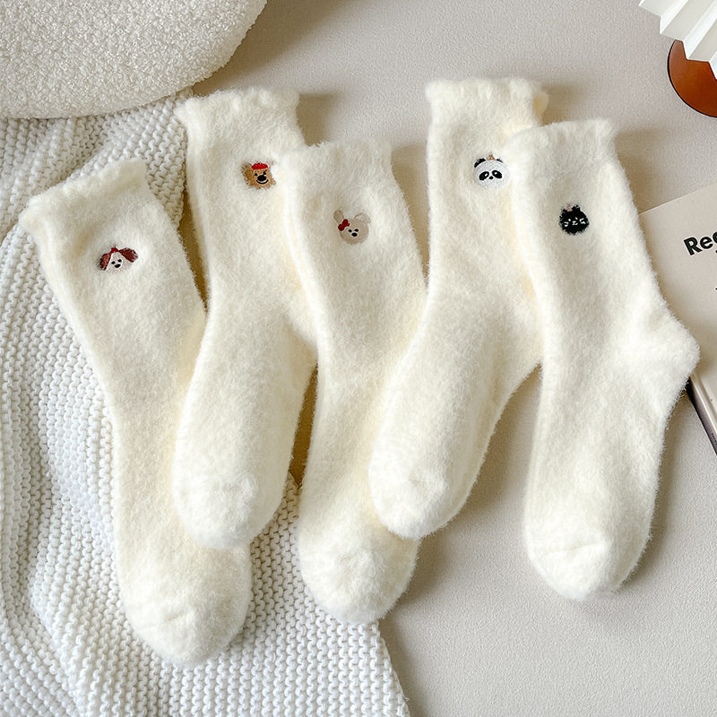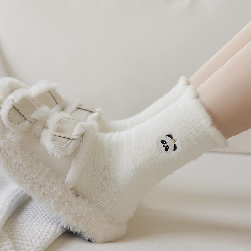 厚袜子女中筒袜白色秋冬季加厚加绒保暖刺绣冬天长筒袜潮水貂绒