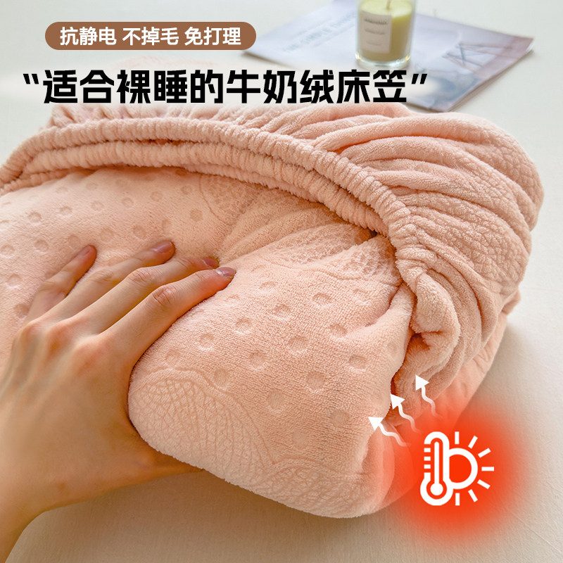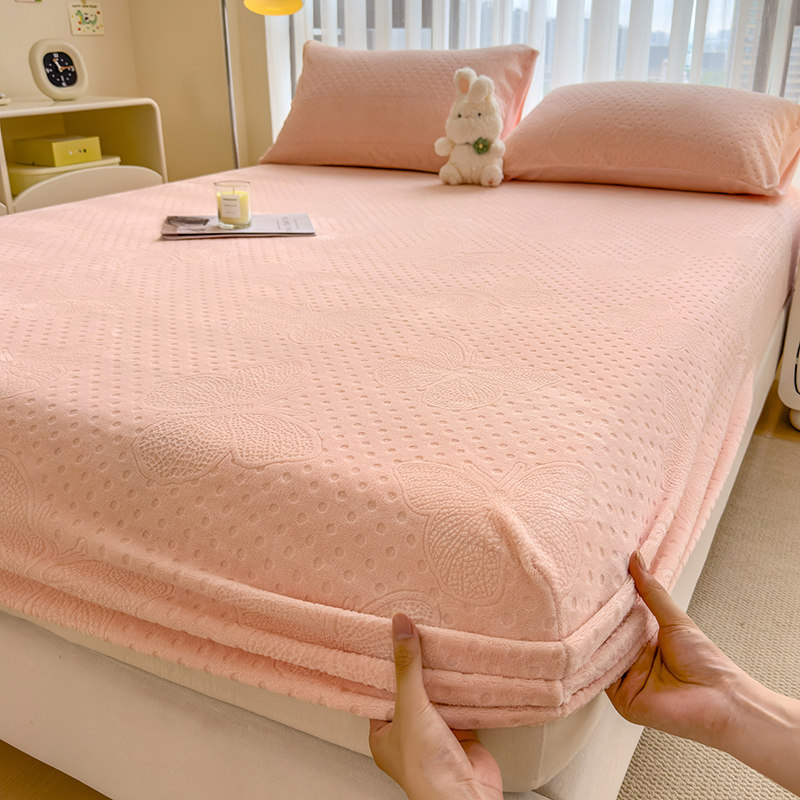 床笠冬季加绒床罩新款雕花牛奶绒加厚保暖法兰珊瑚绒床套罩三件套