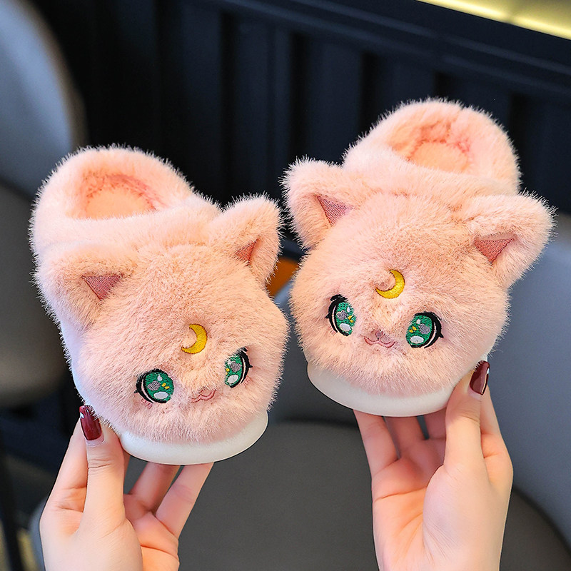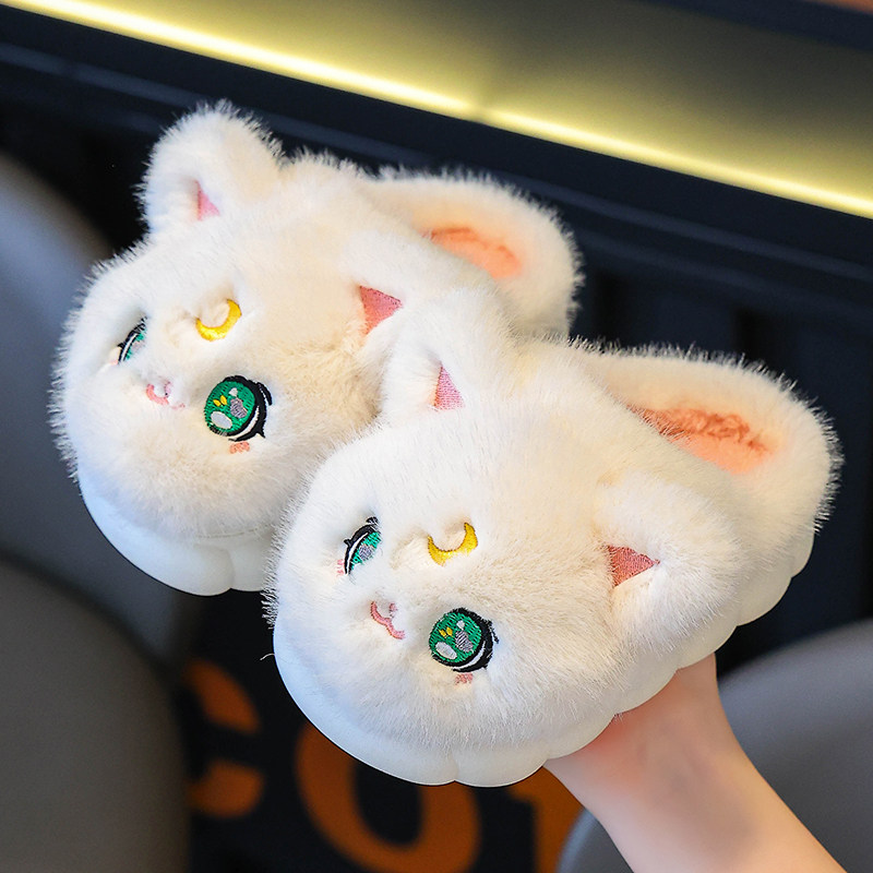 儿童棉拖鞋冬季加绒兔子毛毛拖鞋小孩室内男女童棉拖可爱毛绒防滑