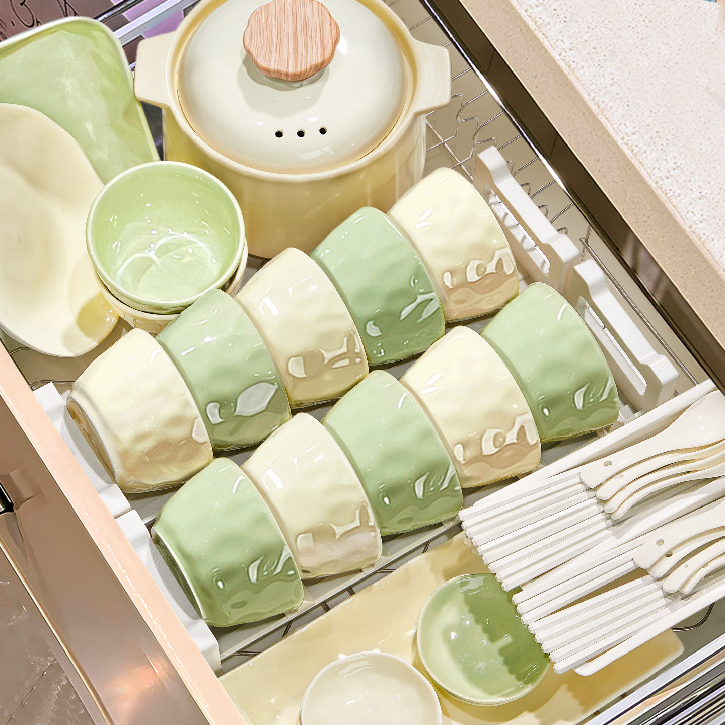奶油风碗碟套装家用2026新款高颜值碗盘餐具乔迁新居陶瓷碗筷碗具